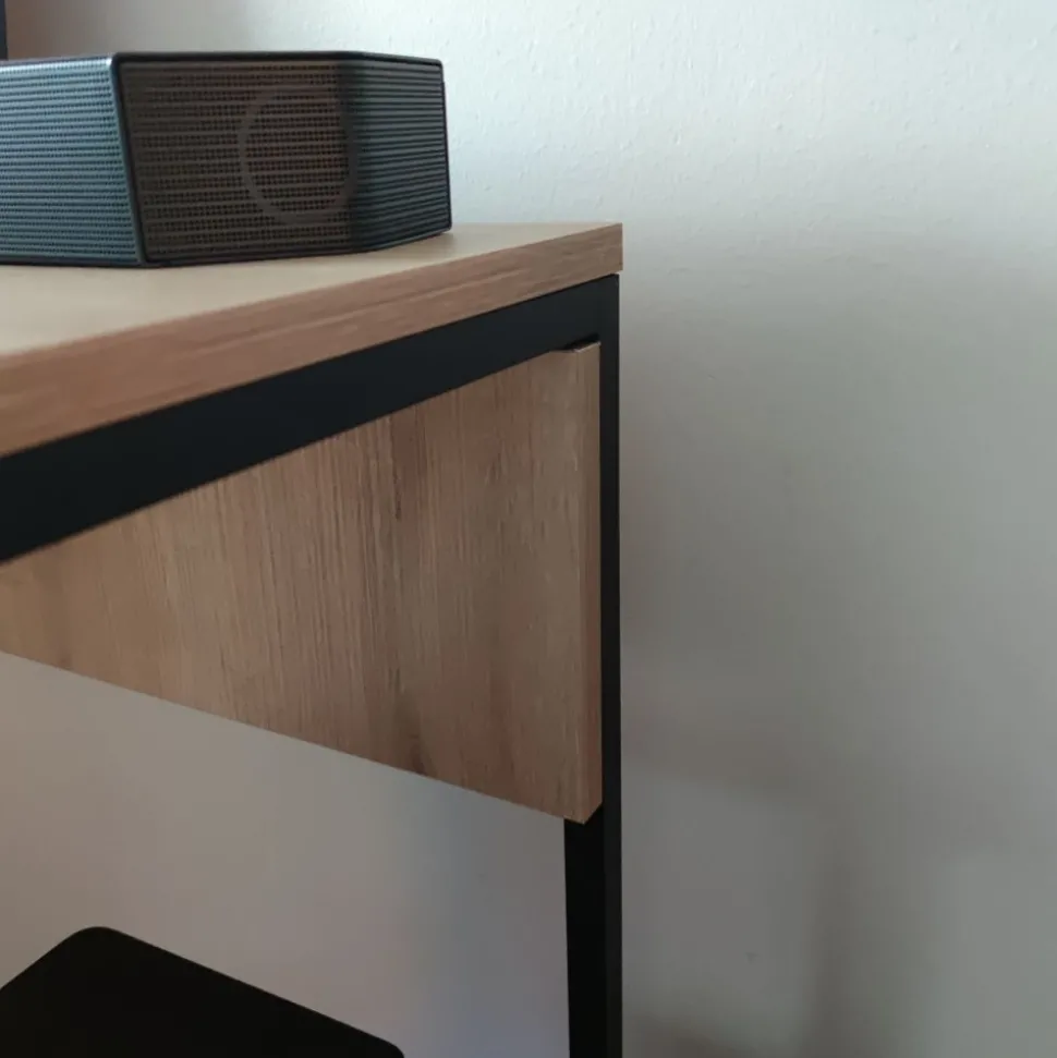 - Material: Melaminbelagd spånskiva/metall