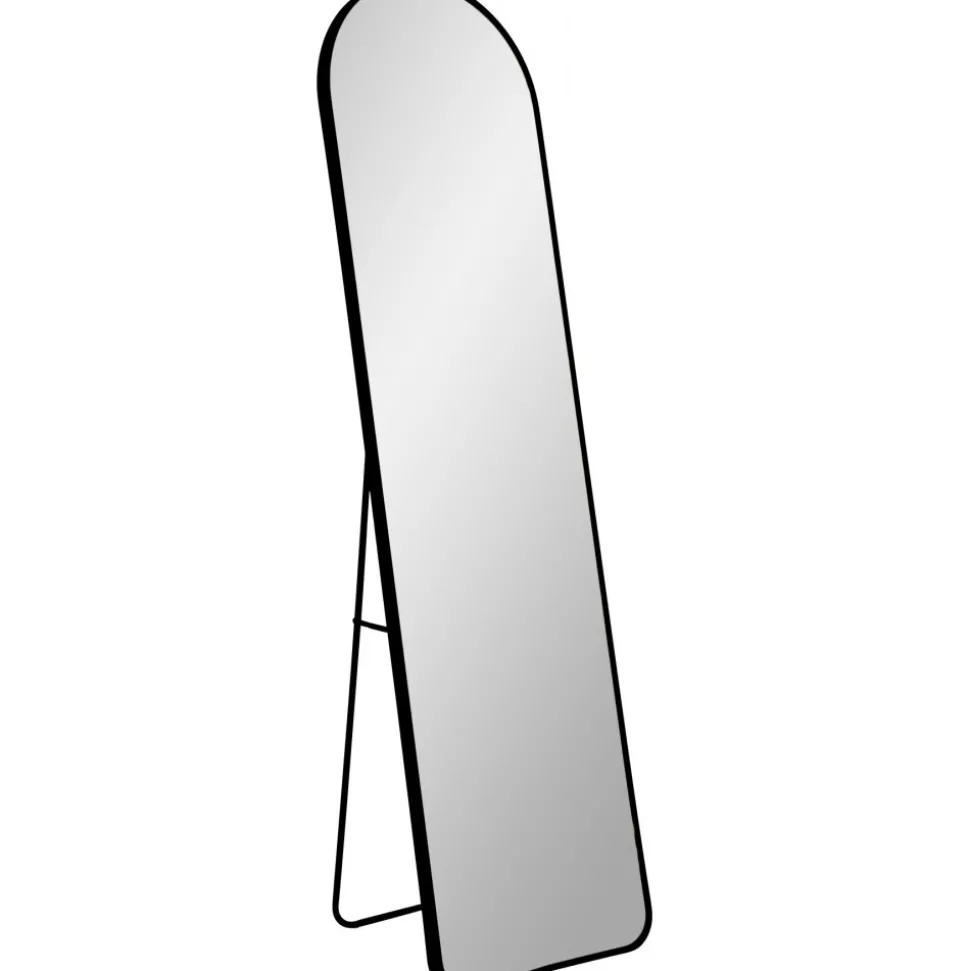 Golvspegel av aluminum och glas.