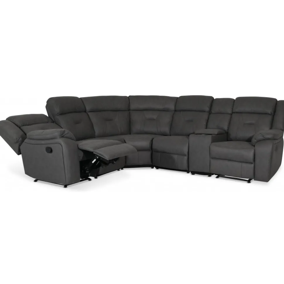 Manhattan är en av våra mest prisvärda reclinerserie med skön komfort och lång hållbarhet. Hörnsoffa med recliner funktion i de yttre sätena samt dryckeshållare med förvaring. Fäll bak ryggen och fäll ut fotstödet till önskad position och njut av en fantastisk komfort. Hörnsoffan är tillverkad i ett slitstarkt och skönt grått PU med skumstoppning för god komfort.