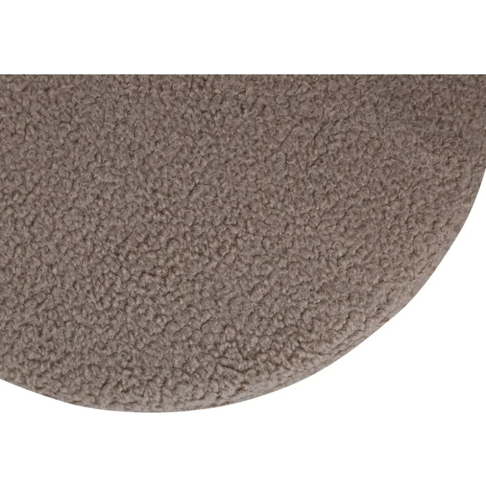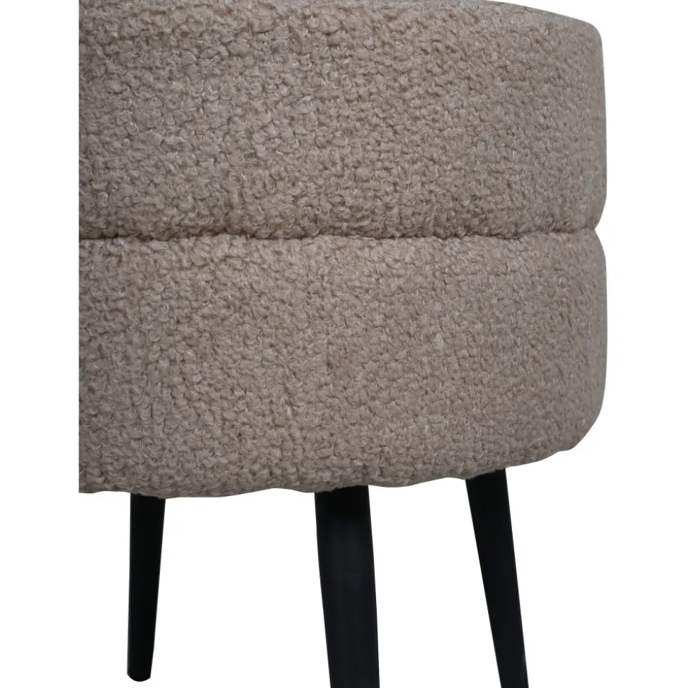 Sittpuff av trä och stål, klädd med polyestertyg.