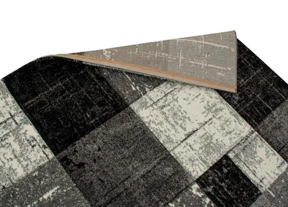 Aversa är en frizematta som har ett snyggt rutmönster och går i färgerna svart, vitt och grått. Mattan har detaljer som påminner om färgstänk, vilket skapar en gammeldags och sliten look. Nougat har en kort skuren lugg och är maskinvävd i polypropylen, vilket är ett syntetmaterial som är lätt att rengöra och hålla fri ifrån ludd och damm. Eftersom den har korta fibrer så tränger inte smuts in lika lätt som på en med längre fibrer och den har en hög resistens mot de flesta fläckar.