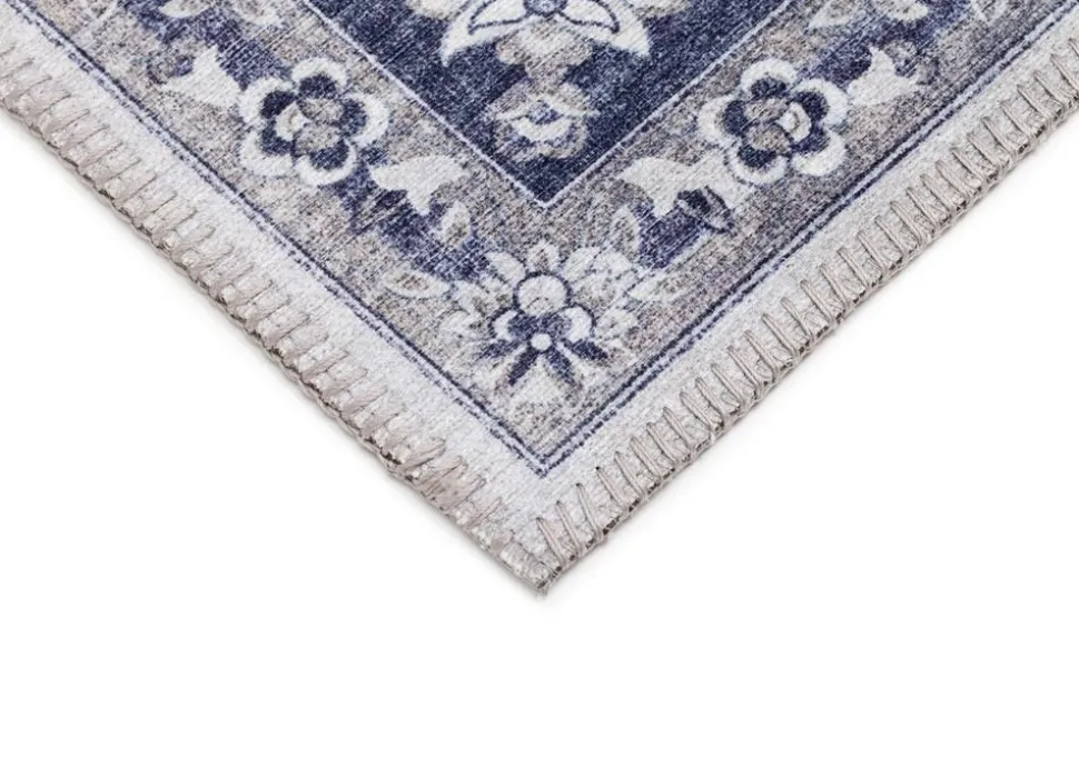 Cleo Tabriz är en elegant som har stilrent mönster med orientalisk inspiration. Mattan har en melerad ljusgrå bottenfärg med tryckt mönster i grå och blå toner. Mattans kanter pryds utav en sydd langettering som består av riktiga stygn, vilket ger en exklusiv och lyxig känsla.