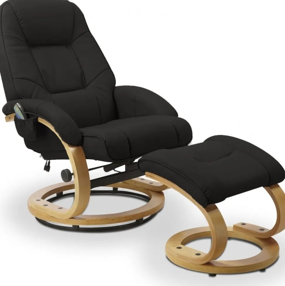 - Massagefåtölj med fotpall i svart pu – Lanzer