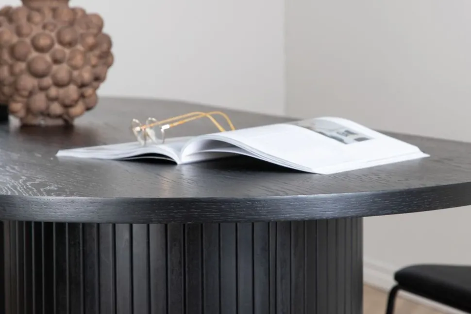 Matbord med en modern design. Tillverkat i solid trä och MDF, med vacker svartbetsad ekfanér.