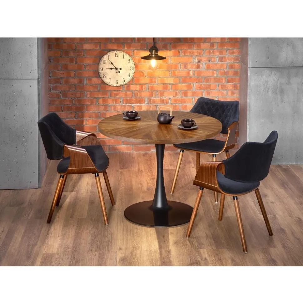 Upplev den perfekta kombinationen av stil och funktionalitet med Towson matbordet. Med en diameter på 100 cm och en vacker valnötsfinish i kombination med svarta detaljer, passar detta utmärkt i både moderna och klassiska kök. Det runda designen skapar en inbjudande atmosfär, vilket gör det lättare att samlas för middagar och umgänge med familj och vänner.