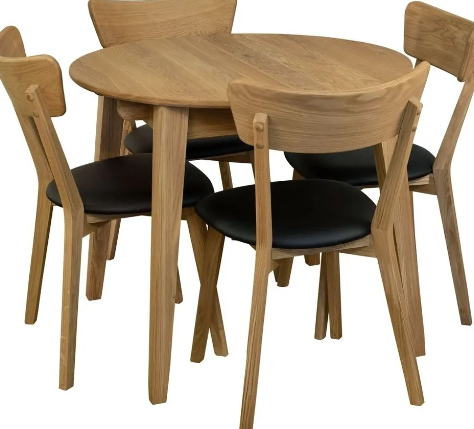 - Matgrupp Genova matbord 90-130 cm inkl 4 st Amino stolar – Oljad ek/svart ecoläder