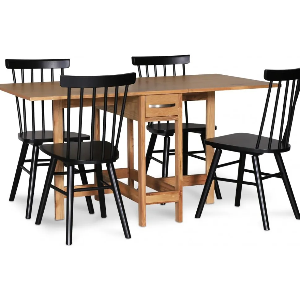 Fårö i klassiskt utförande. Fårö klaffbord med 4 st matchande svarta Orust pinnstolar.