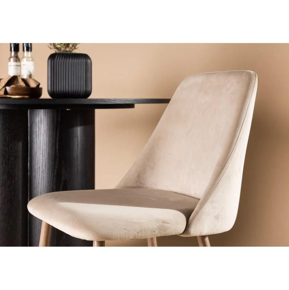Förvandla ditt matrum med vår eleganta Night som kombinerar stil och komfort på bästa sätt. Med en helklädd sits i mjukt beige sammetstyg erbjuder denna en inbjudande och lyxig känsla som gör varje måltid till en upplevelse.