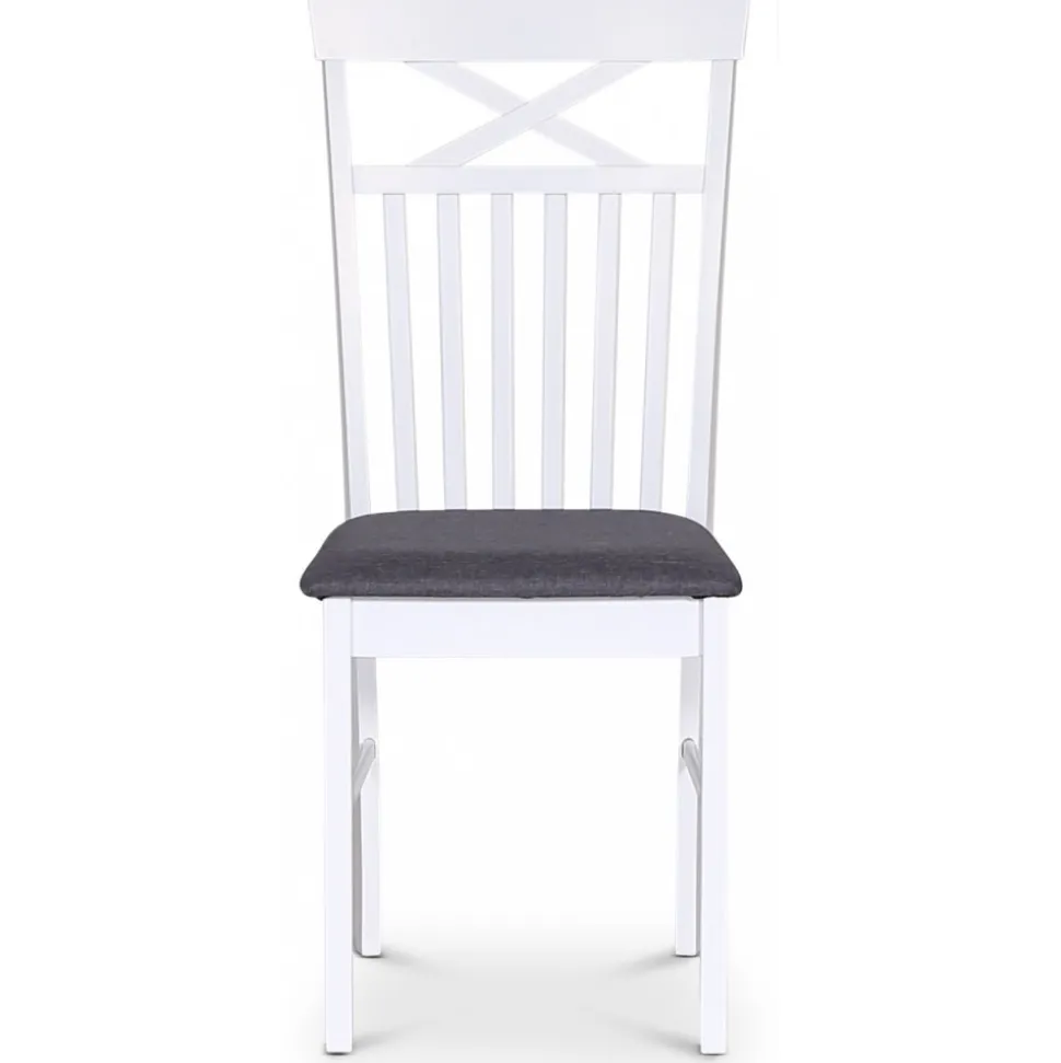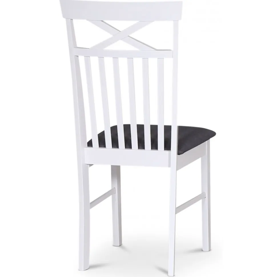 Klassisk i modernt utförande som ger elegans och stil till ditt matrum eller kök. Denna är designad med en sits i grått tyg som erbjuder både komfort och en sofistikerad look. Det karakteristiska krysset överst i stolsryggen tillför en unik detalj som gör att stolen står ut i ditt hem.