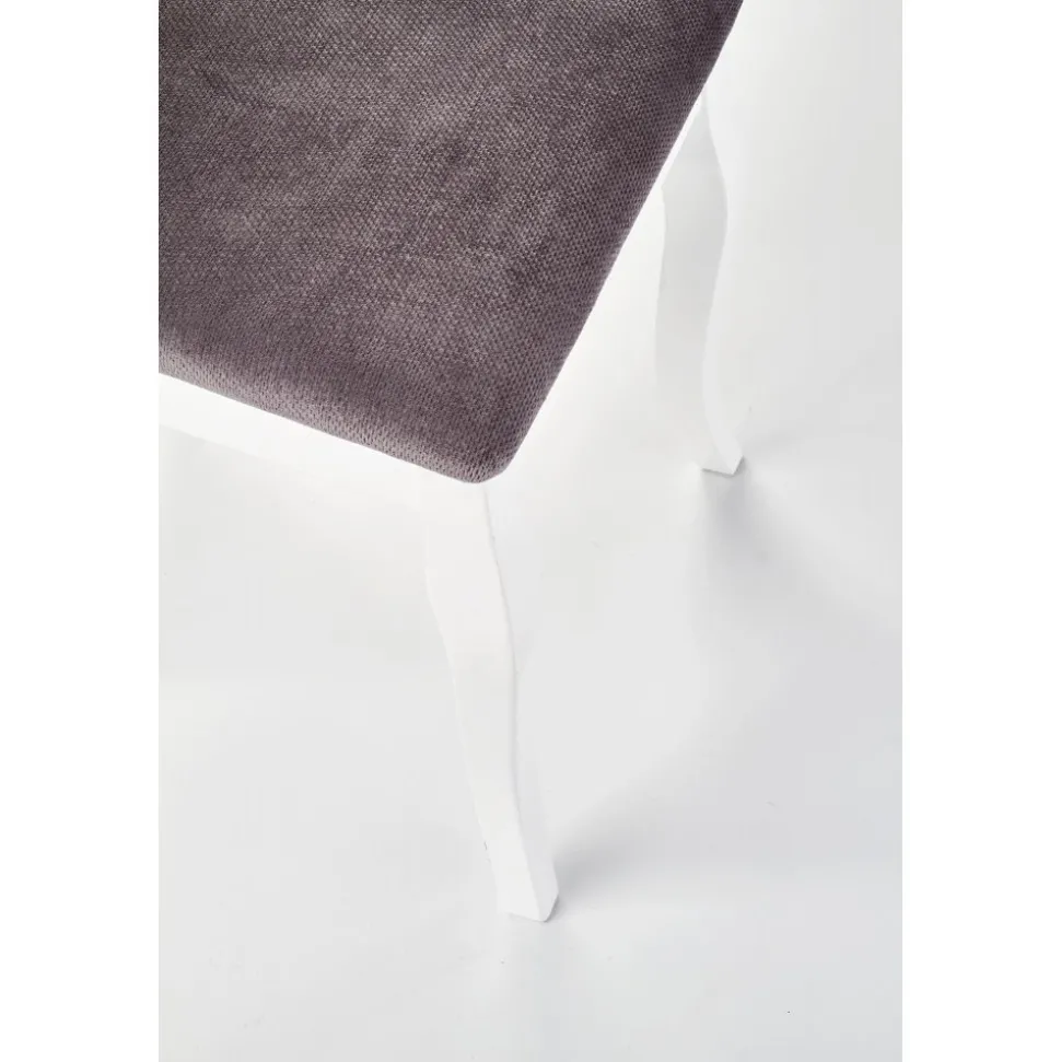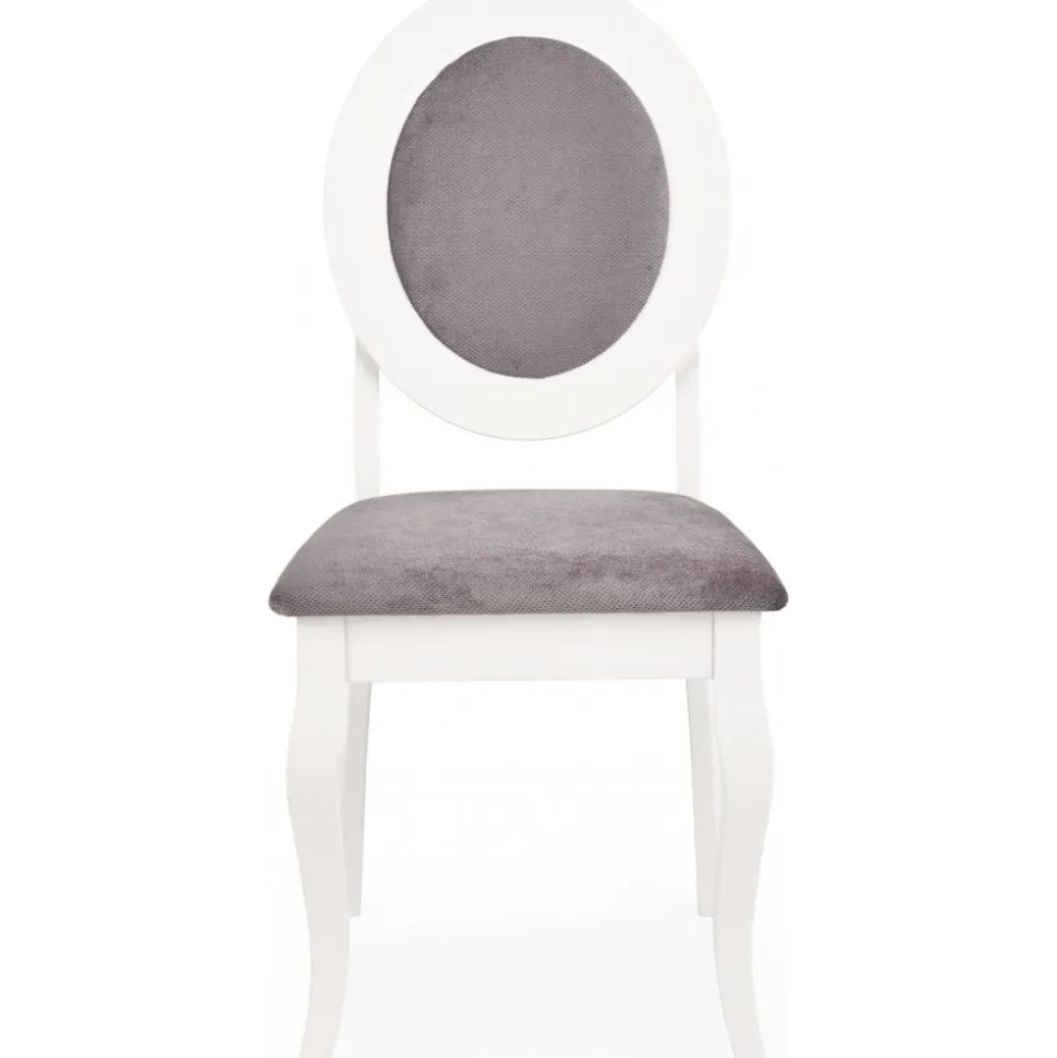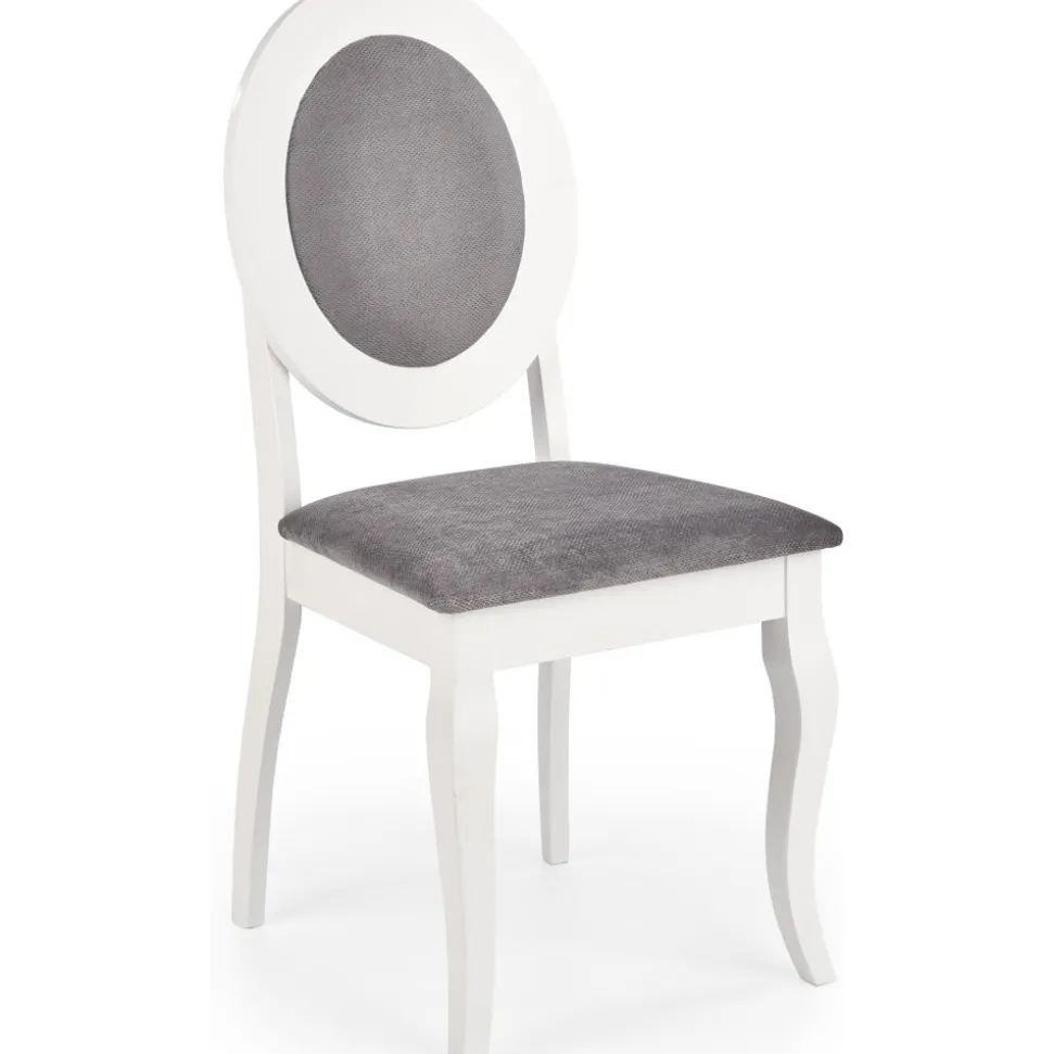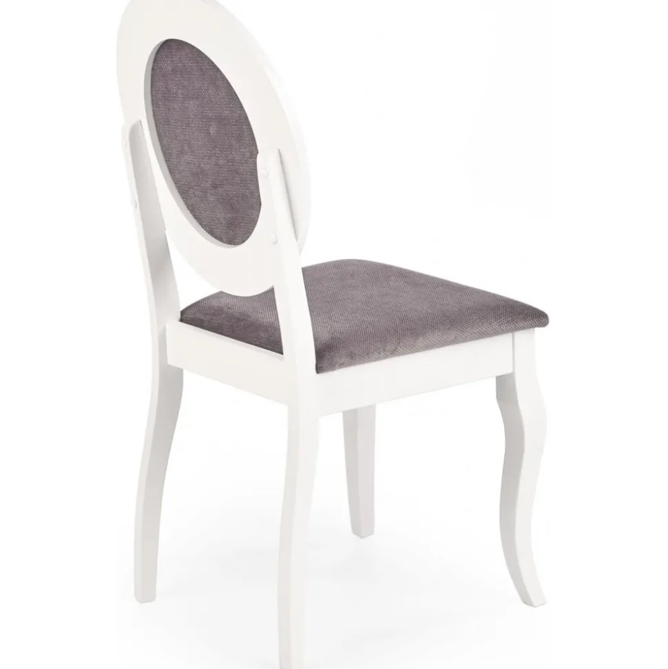 Stolens sits är klädd i ett mjukt och slitstarkt tyg, vilket ger både komfort och hållbarhet. Gummiträstrukturen bidrar till stabilitet och gör stolen hållbar för dagligt bruk. Den ljusa färgkombinationen av vitt och grått ger ett fräscht och ljust intryck, vilket kan lyfta hela rummet.