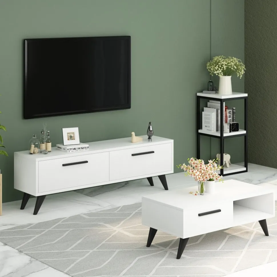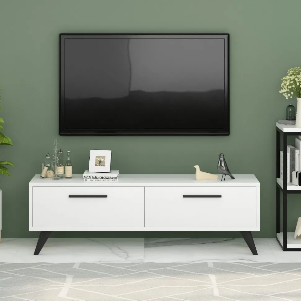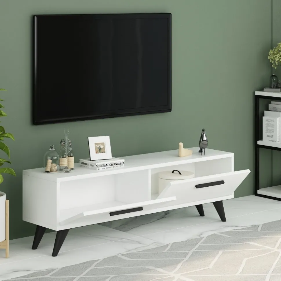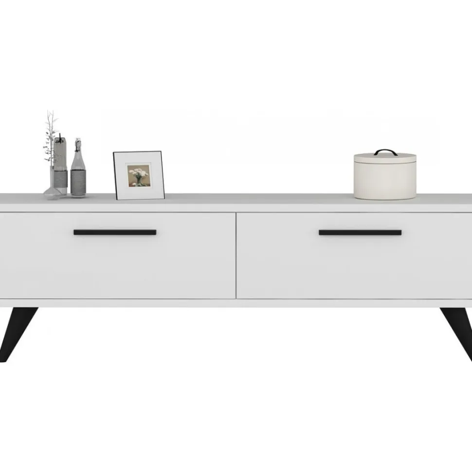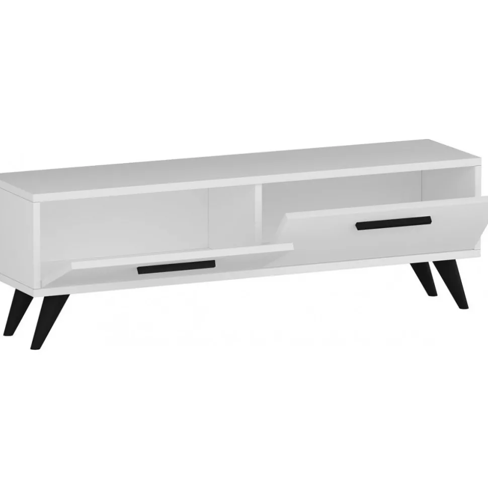 Mediabänk av melaminbelagd spånskiva.