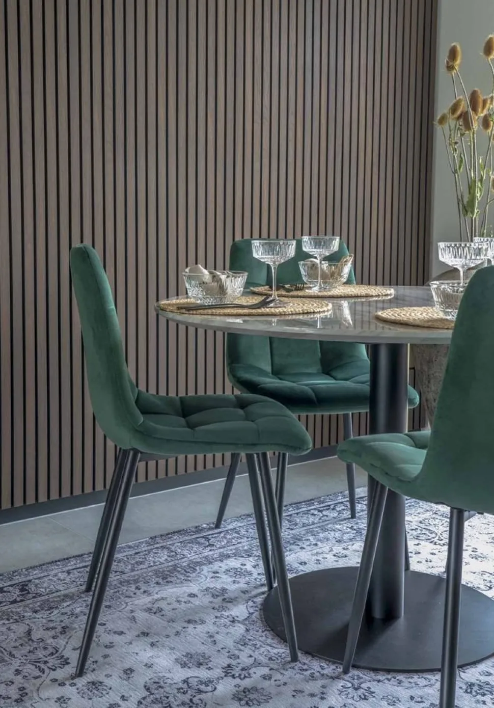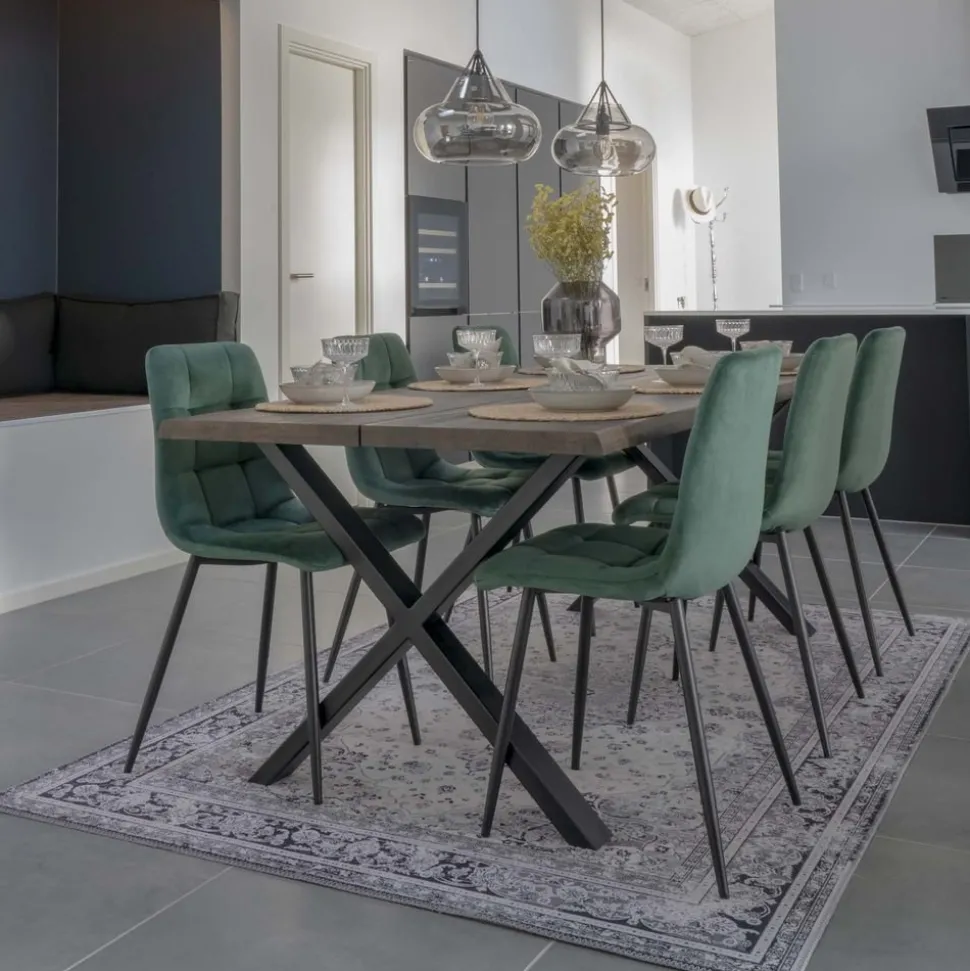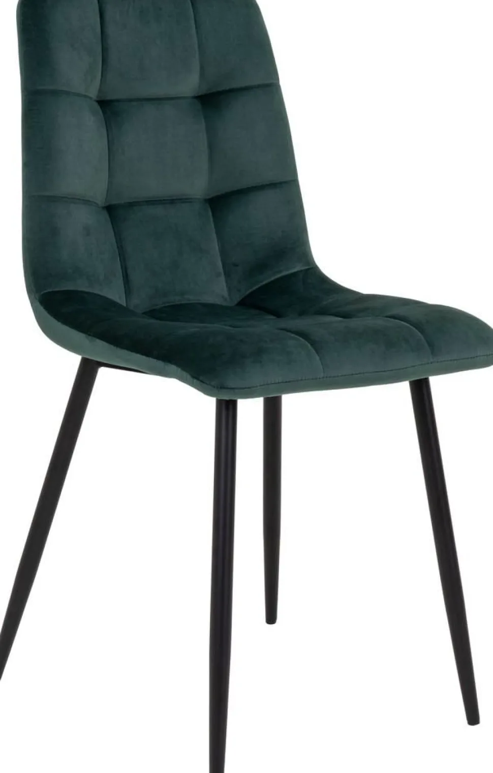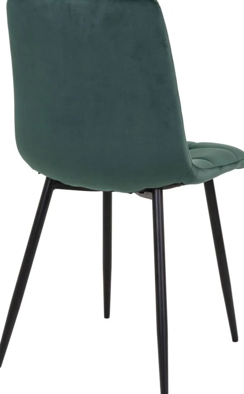 Stol i mörkgrön velour med svarta ben.