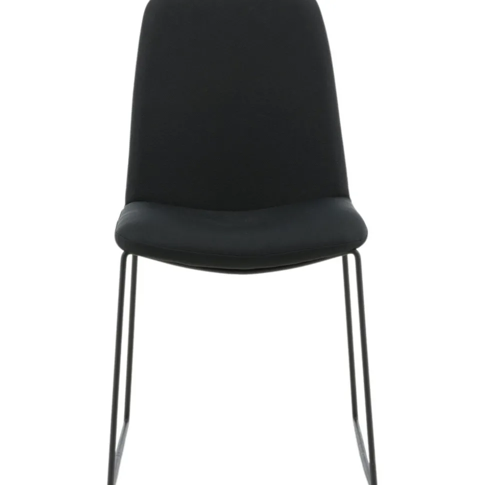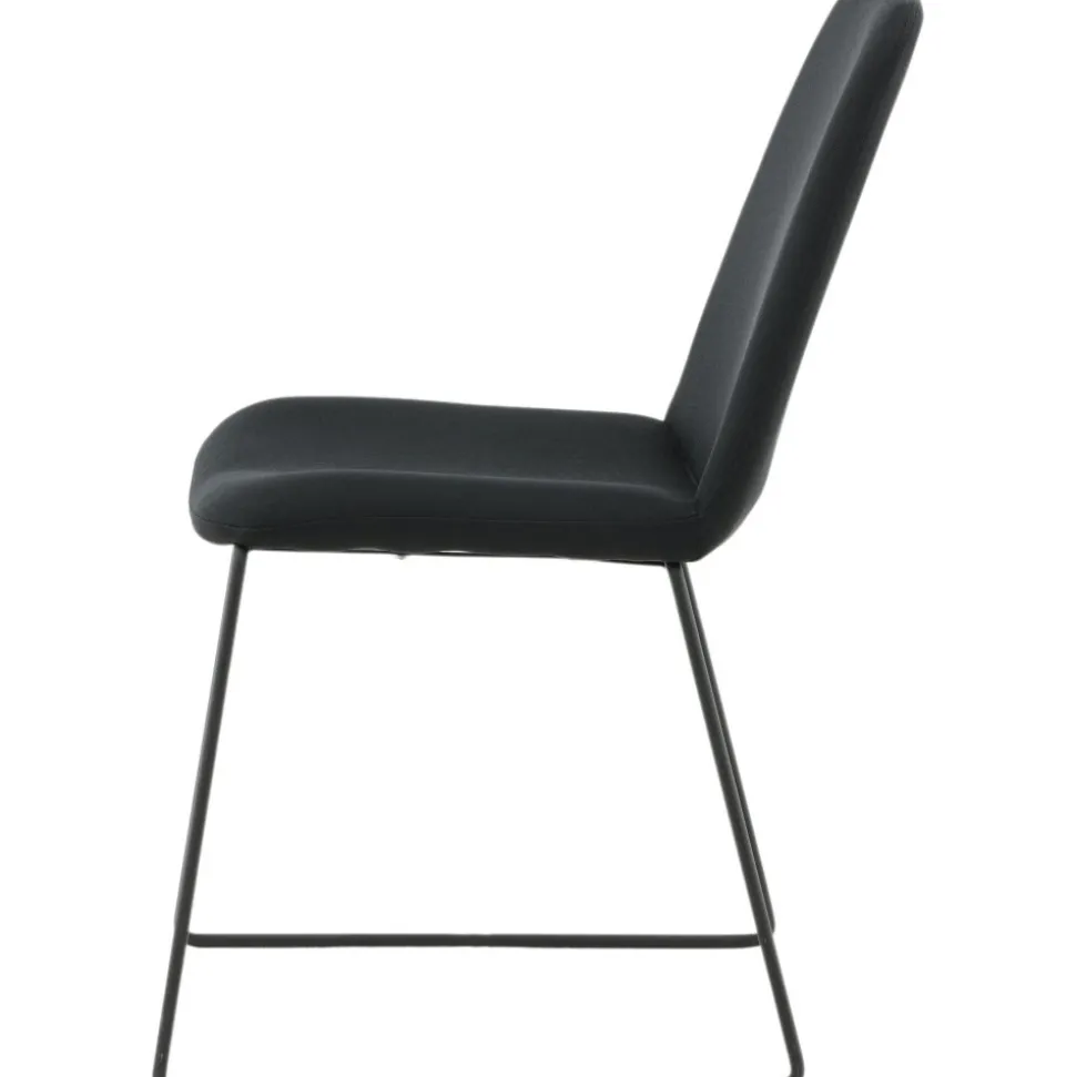 Matstol av metall och trä, klädd med polyestertyg.
