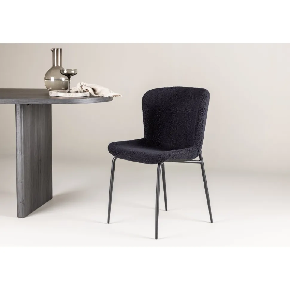 Upptäck Modesto matstolen – en perfekt kombination av elegans och modernitet för ditt matbord. Med en sits klädd i mjukt teddymaterial och ben tillverkade av stål erbjuder Modesto komfort. Den eleganta svarta sitsen matchas perfekt av de svarta benen, vilket ger stolen en tidlös och stilren design. Med sin enkla och moderna estetik passar Modesto perfekt in i olika inredningsstilar och lämnar ett bestående intryck i ditt hem. Ge din en uppdaterad känsla av elegans och stil med Modesto matstolen. En perfekt balans mellan tidlös design och moderna detaljer, vilket gör den till det perfekta valet för både vardagsmiddagar och festliga tillfällen.
