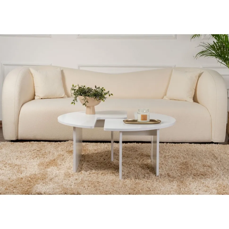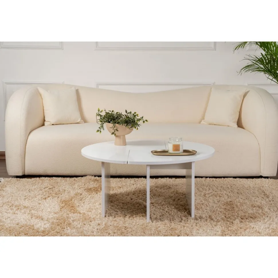 Soffbord av melaminbelagd spånskiva.