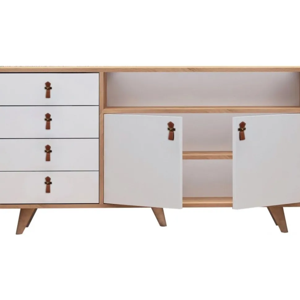 Skänk av trä med handtag av konstläder.