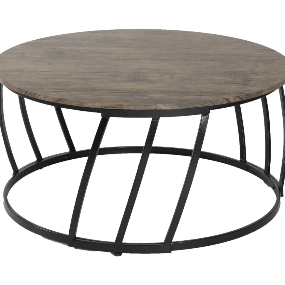 Soffbord med antikmönstrad toppskiva, stomme av svart metall.