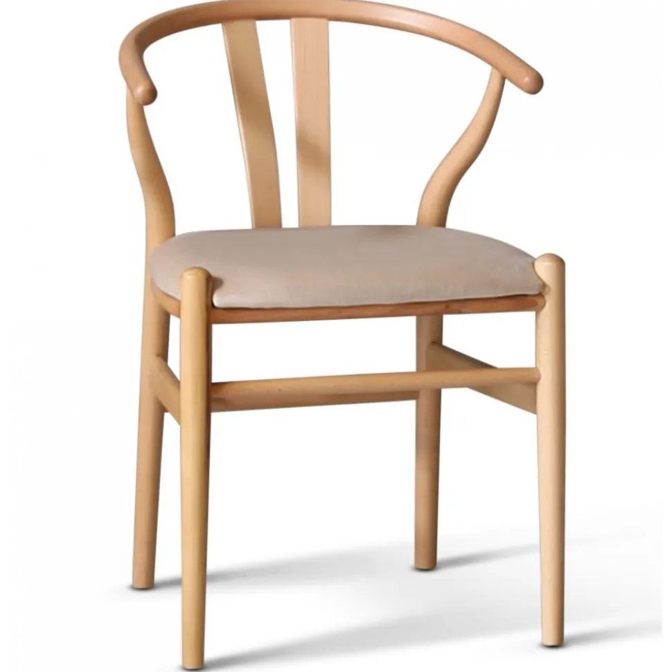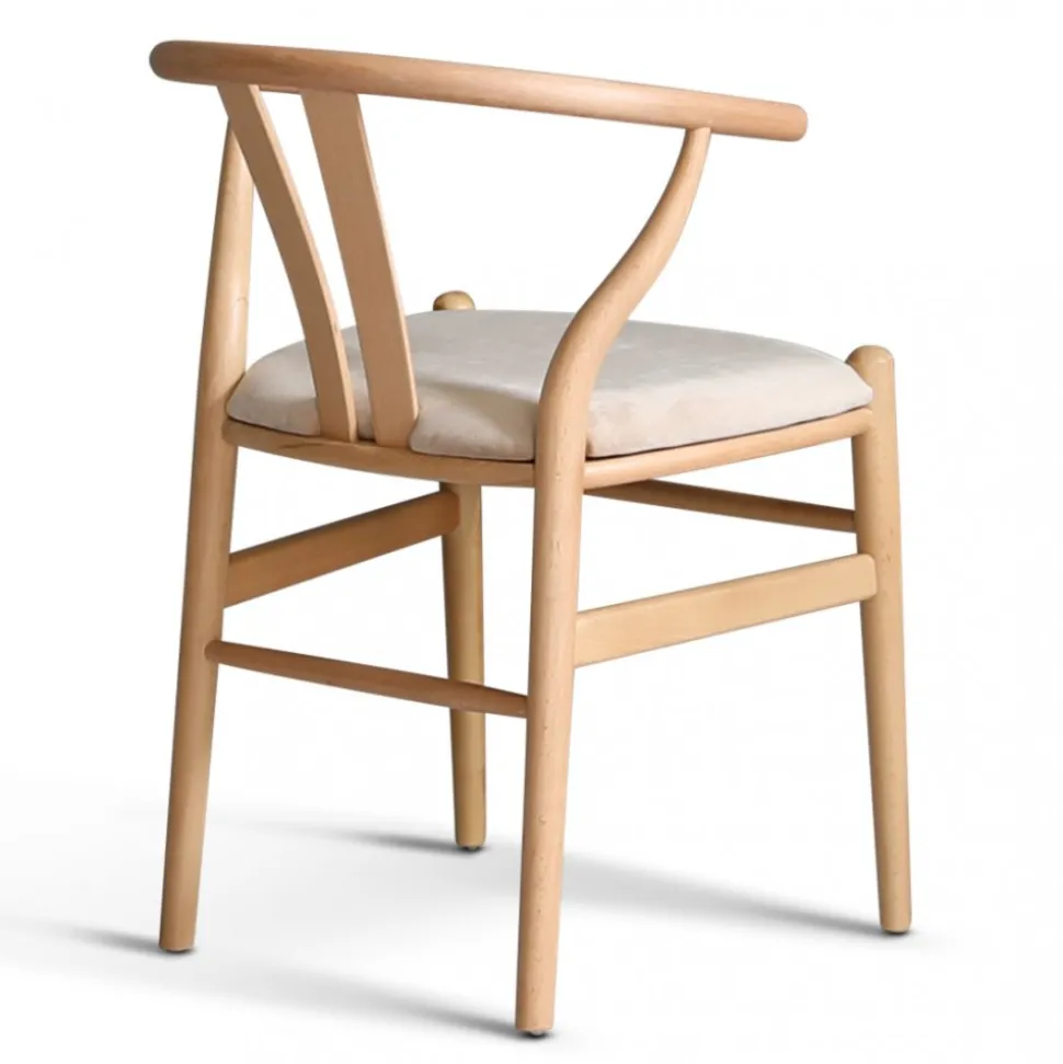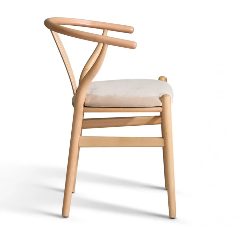Nemo karmstol i naturfärgad stomme av massiv lackad bok och med beige sammetsdyna. Klassisk som även passar till de moderna borden.
