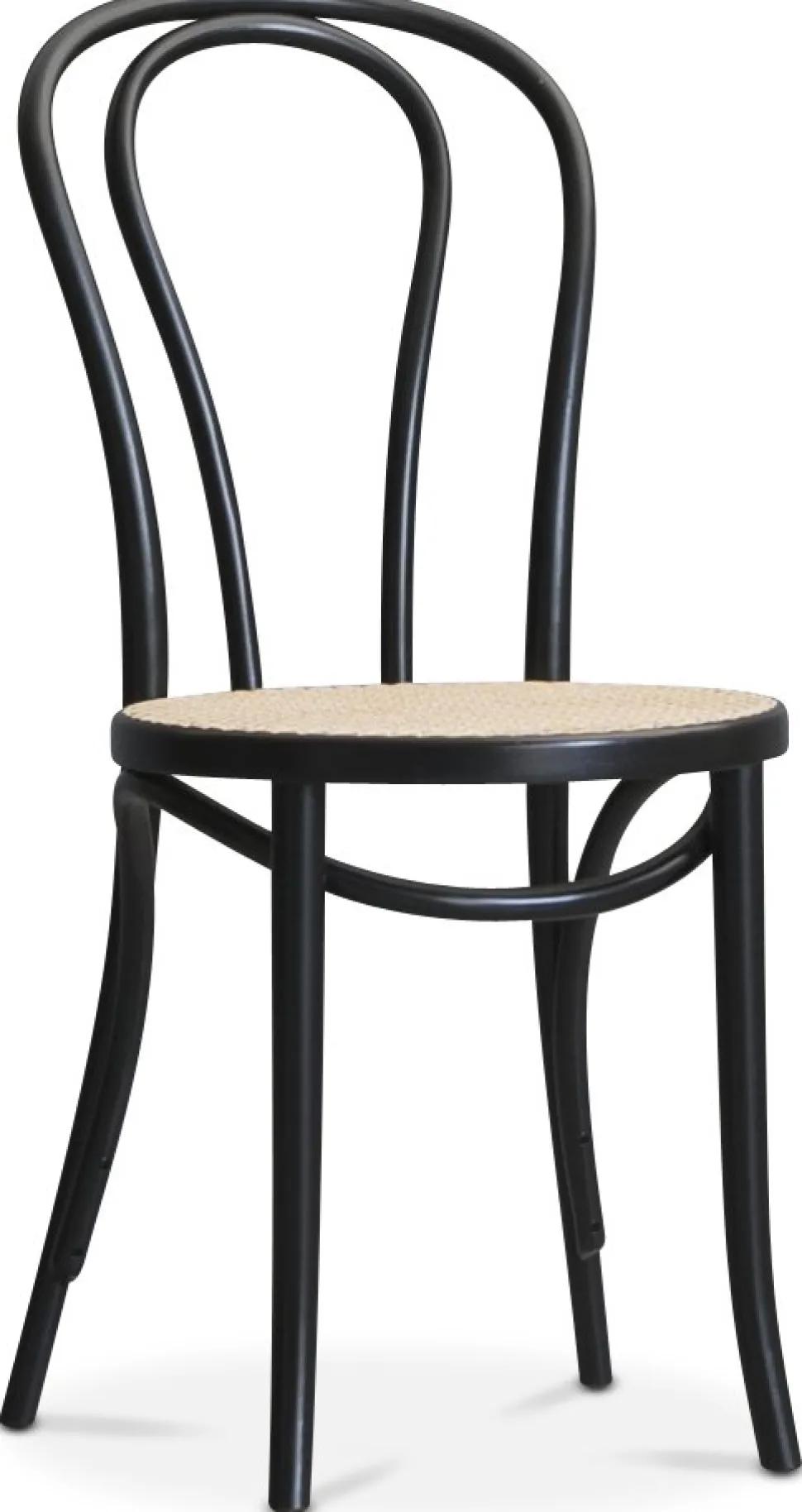 Svartlackad stol No18 med beige rotting sits. Levereras monterad. Klassisk designikon. Passar både till modern inredning som retro och vintage.