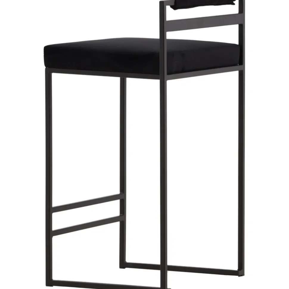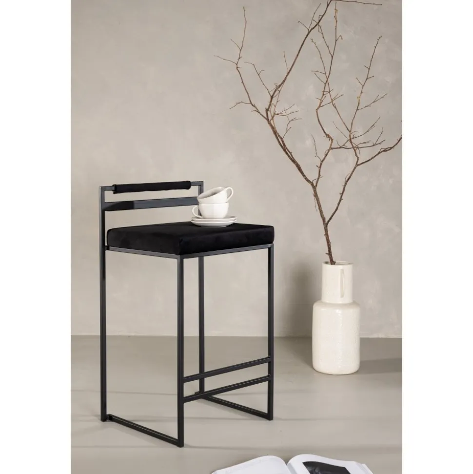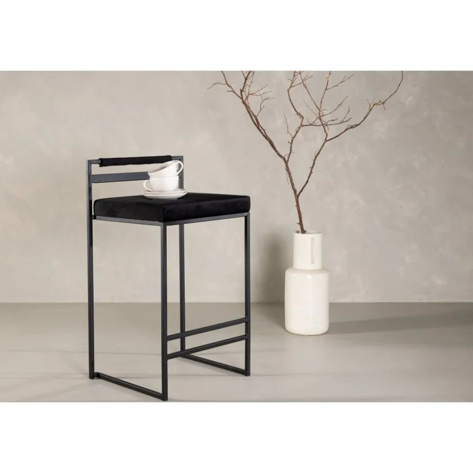 Barstolen som gör ett imponerande intryck och passar perfekt i det moderna hemmet. Den skandinaviska designen är trendsäker med sina raka nordiska former och minimalistiska stuk. Sitsen är mjukt stoppad och har en elegant klädsel i svart sammetstyg och benstommen är stilrent smal i svart stål med ett lägre ryggstöd samt integrerat fotstöd för extra komfort. Lika bekväm som iögonfallande gör dessa sig lika bra vid bardisken i köket som kring det höga matbordet!