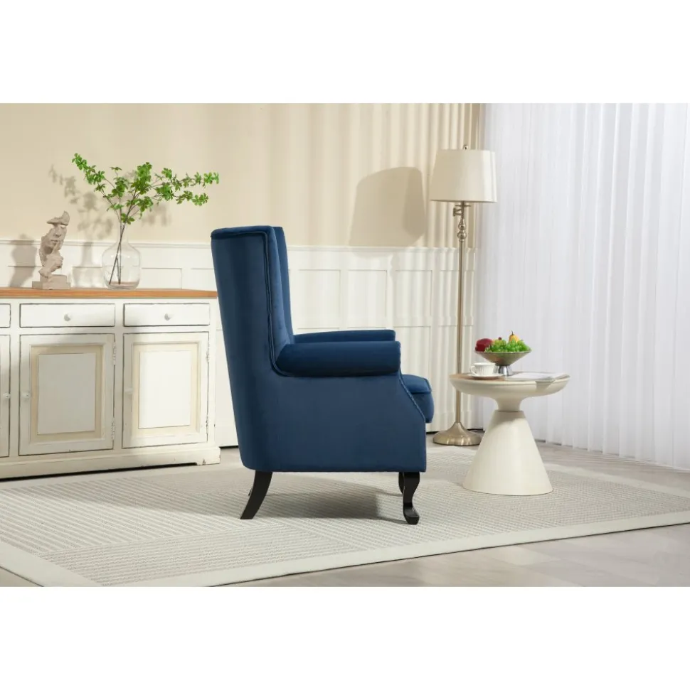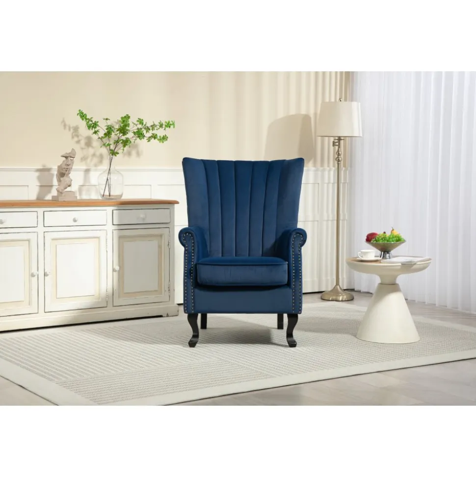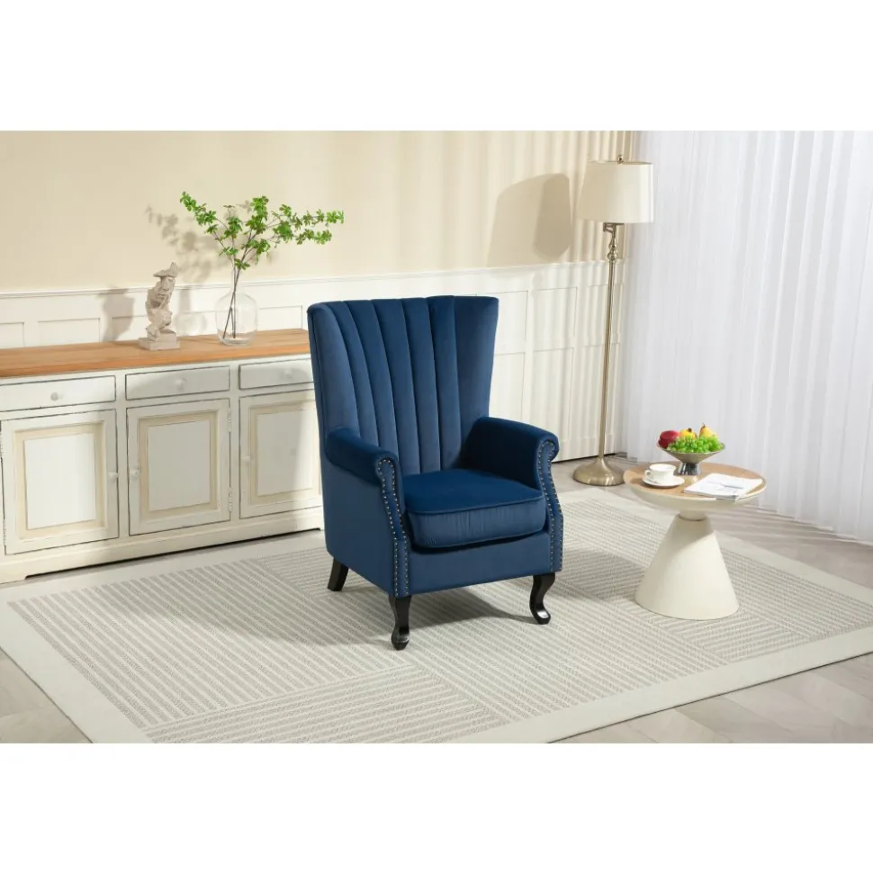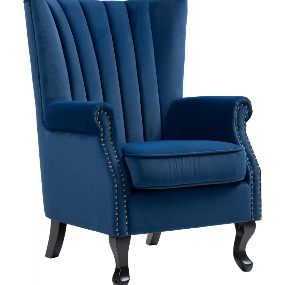 Ge ditt hem en touch av elegans och komfort med Rutil öronlappsfåtölj. Denna fantastiska är designad för att erbjuda både stil och avkoppling, vilket gör den till ett utmärkt val för alla rum i huset. Det blå sammetstyget ger fåtöljen en lyxig känsla och en rik färg som kommer att lysa upp ditt utrymme. Öronlapparna ger inte bara en klassisk charm, utan erbjuder också extra stöd och avskildhet, vilket gör den idealisk för avkoppling med en bok eller för att njuta av ditt favoritprogram.