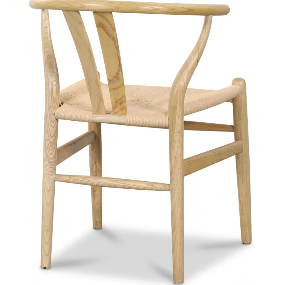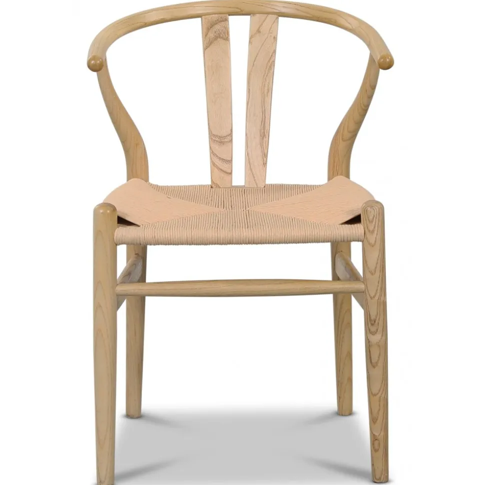 Stommen är tillverkad i slitstarkt almträ, vilket ger stabilitet och lång hållbarhet. Sitsen är handflätad i papperssnöre ett vackert naturmaterial som både skapar en unik struktur och erbjuder en bekväm sittupplevelse. Resultatet blir en som förenar komfort, estetik och genuint hantverk.