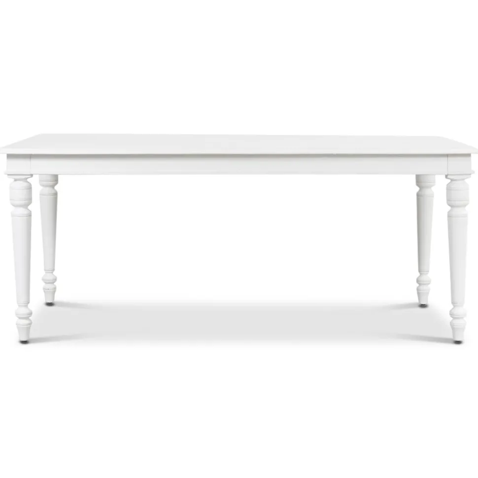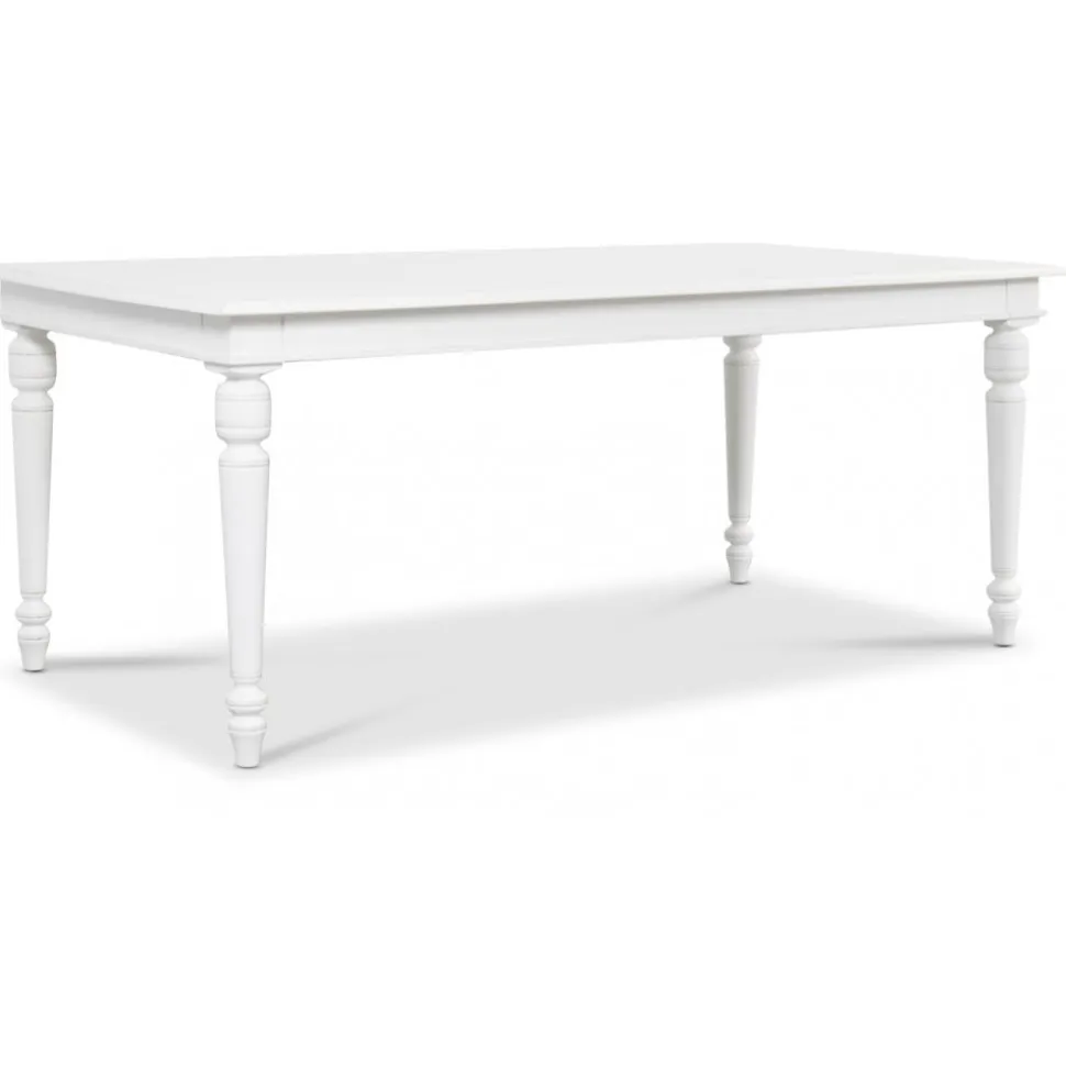 Robust matbord med vackert formade ben och stilfull design. Bordet är lackat vitt med medvetna skavningar för att det rätta antika utseendet. Paris möbelserie består av vitrinskåp, soffbord, skänk och mediabänk.