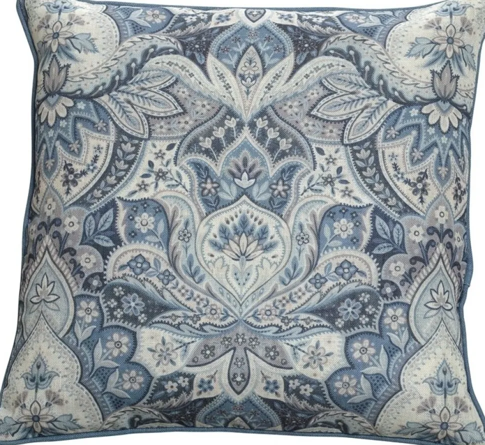Kuddfodral i en polyester-linne mix med mönster på båda sidor. Det är producerat enligt OEKO-TEX standard 100.