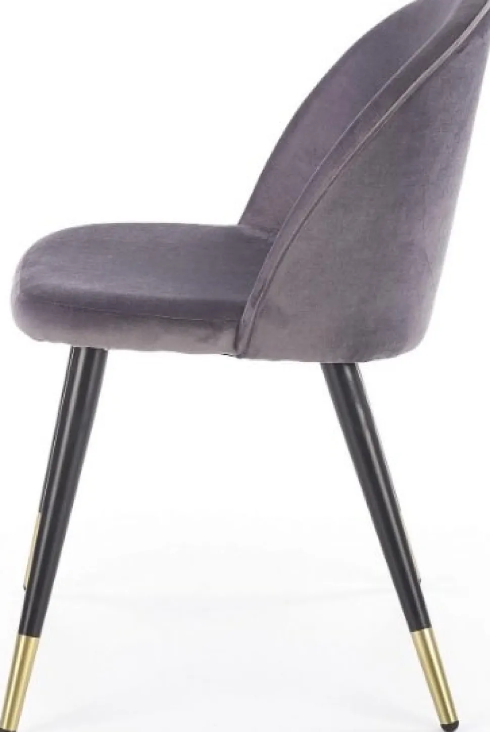 En snygg matstol med en modern design. Stolen är klädd med ett mycket behagligt tyg för maximal komfort och underredet är av pulverlackerad metall med detaljer i guld.
