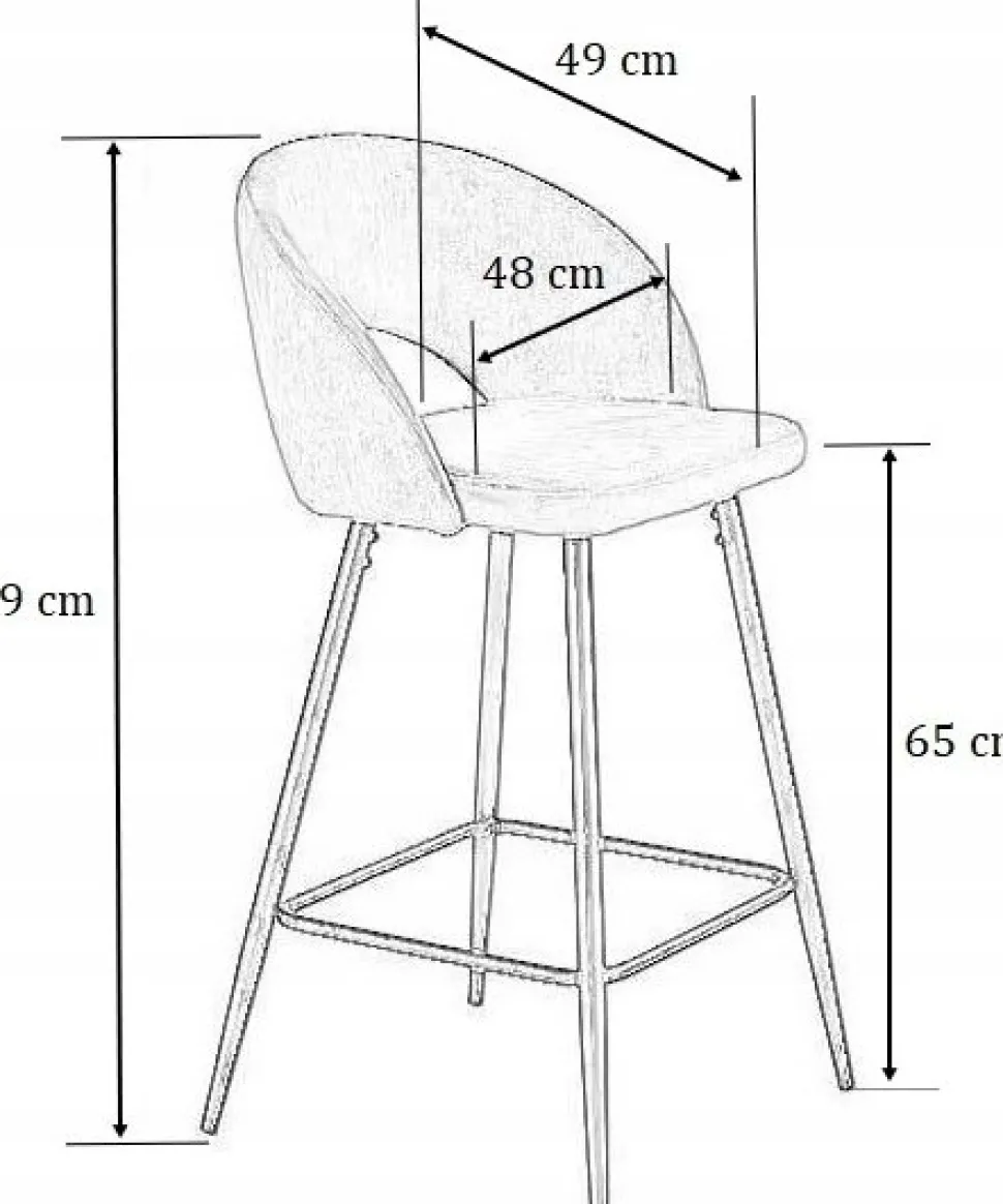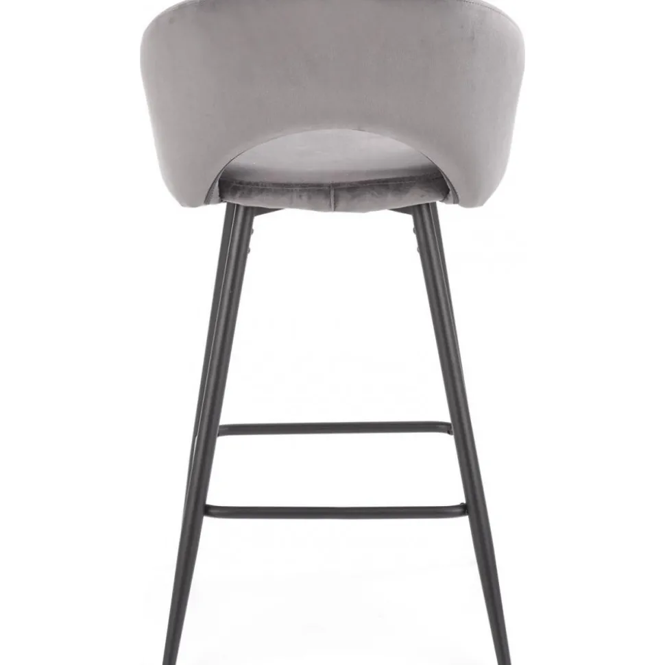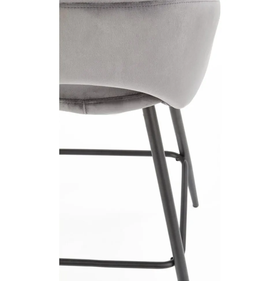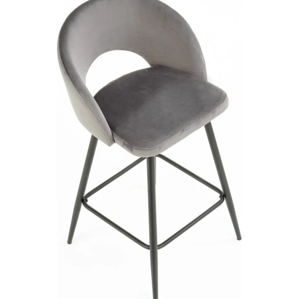 Barstol med underrede av stål och klädsel av sammetstyg.