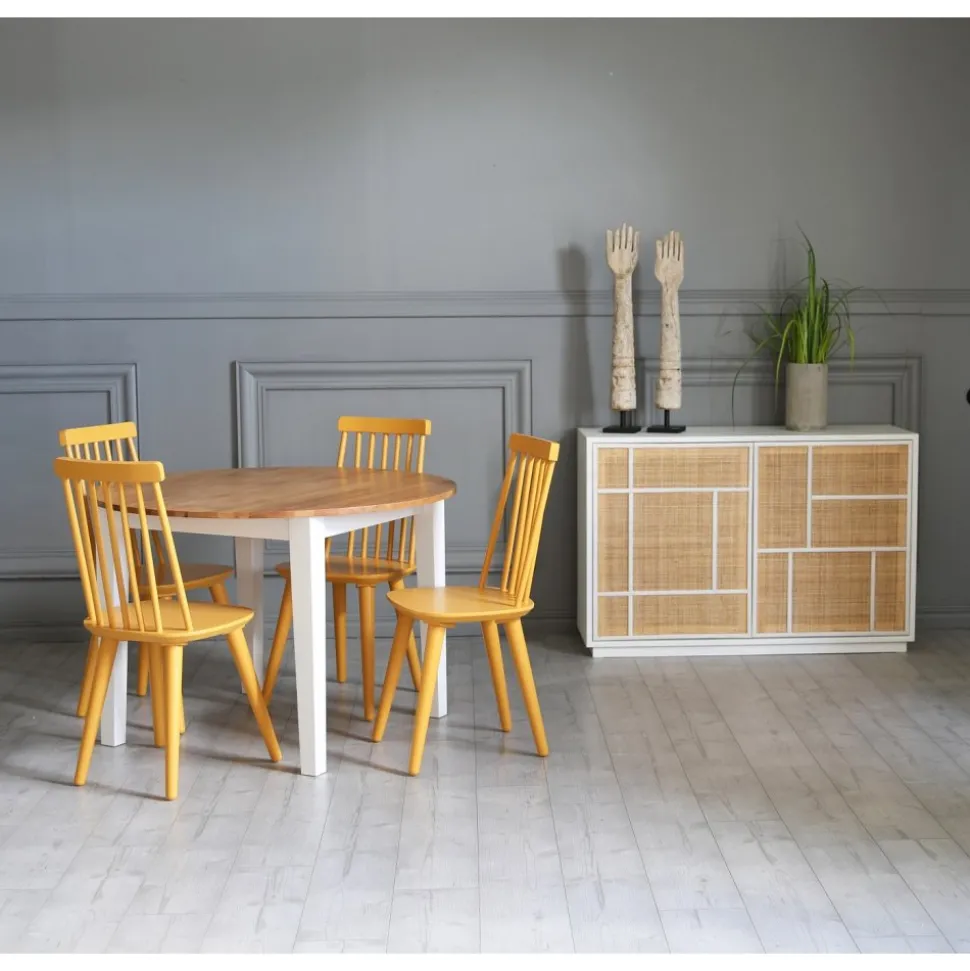 Trästolen är tillverkad i massiv heveaträ som är slitstarkt och kvalitativt, med en fabriksmålad yta i snygg gul finish.