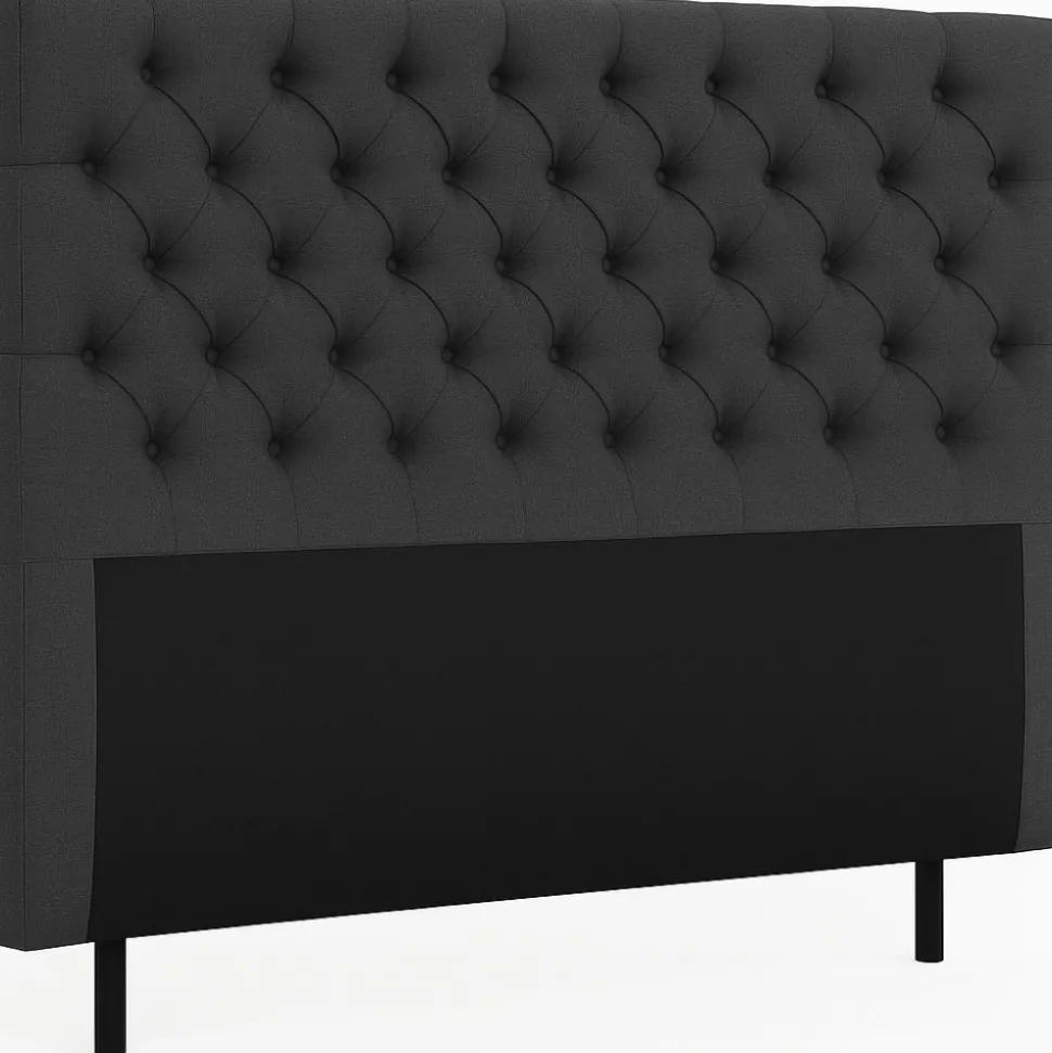 Sänggavel Presley är en stilren och robust, golvstående gavel klädd i mörkgrått tyg. Den eleganta designen med djuphäftade knappar och generös stoppning ger gaveln ett fylligt och imponerande uttryck som lyfter hela sovrummet. En prisvärd och dekorativ detalj som kombinerar komfort och stil.