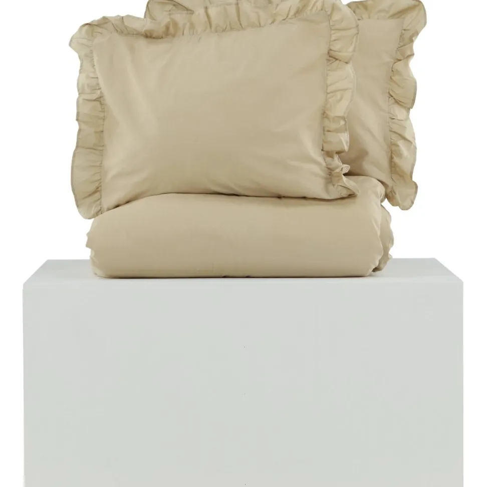 Påslakanset med en dekorativ volangkant. Tillverakt i bomull för en skön och sval känsla mot kroppen.