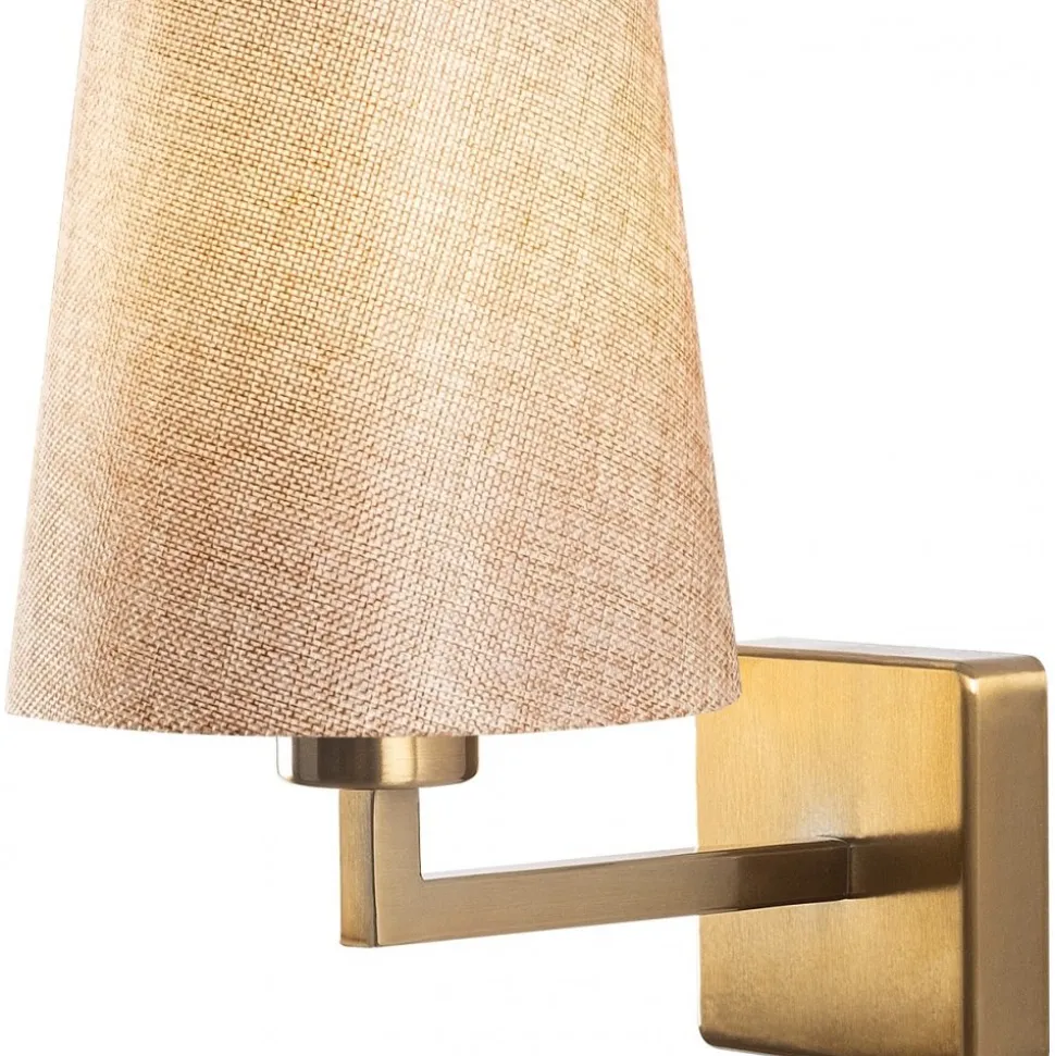 Vägglampa av metall och tyg. Ljuskälla ingår ej.