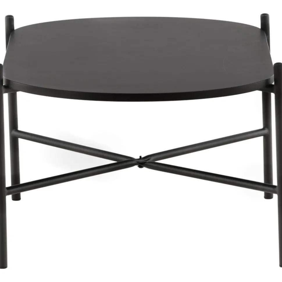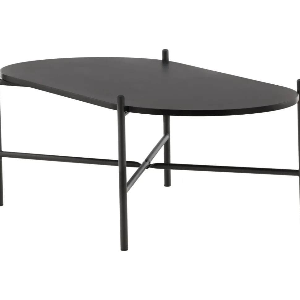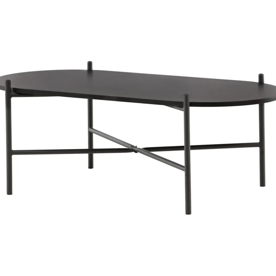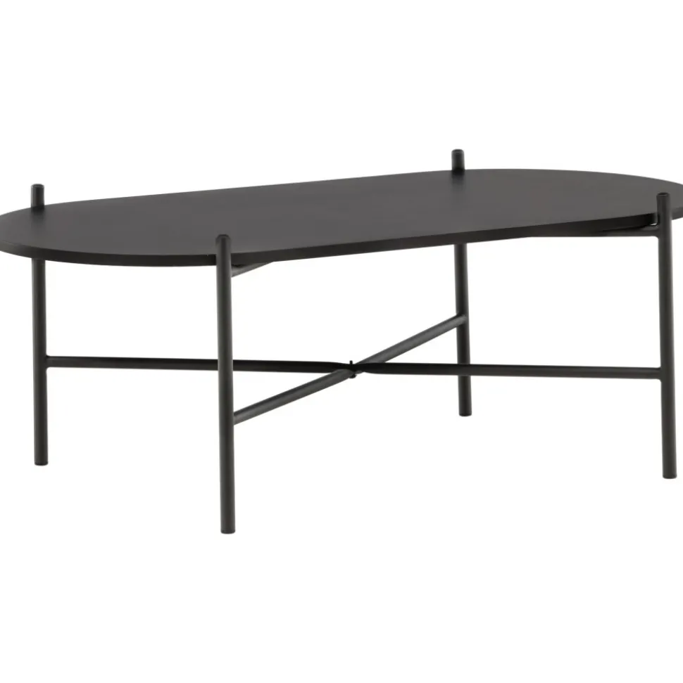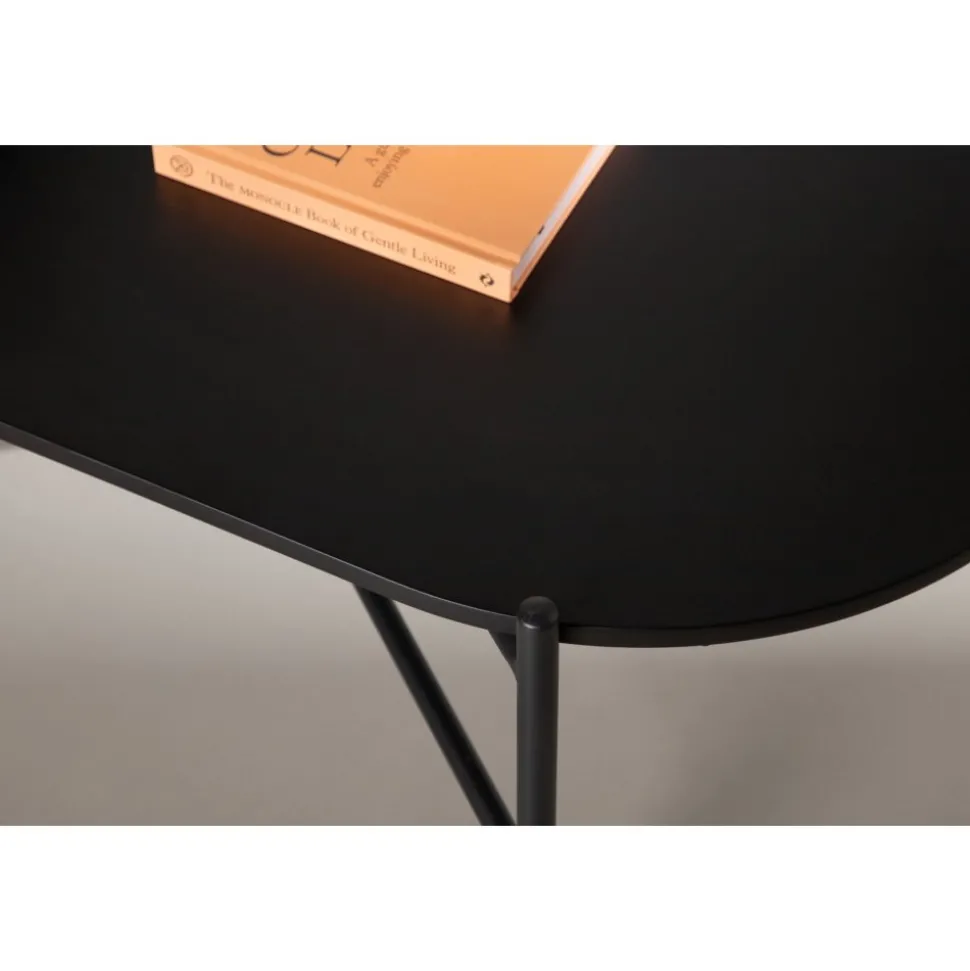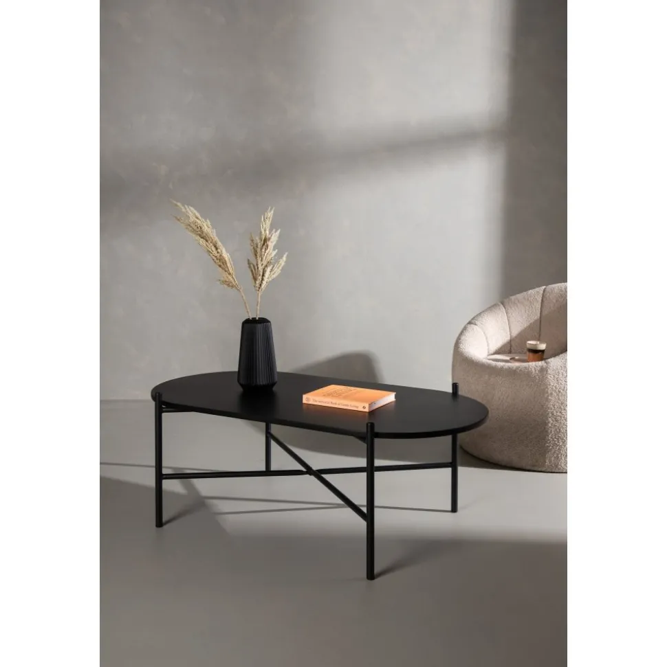 Soffbord med en iögonfallande, skandinavisk design och en generös storlek som gör att det passar perfekt framför den större soffan. Bordet har en oval toppskiva i svart MDF och en minimalistisk stomme i svart stål. Bordsskivan erbjuder gott om plats för både dekorationer och det luftiga underredet bidrar till en stilren atmosfär i rummet. Placera på den mysiga mattan framför soffan och höj stilnivån i hemmet.