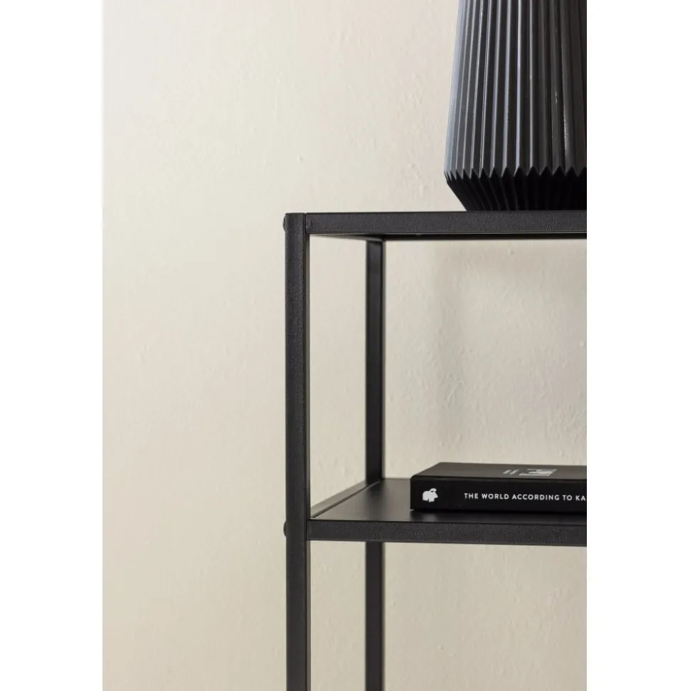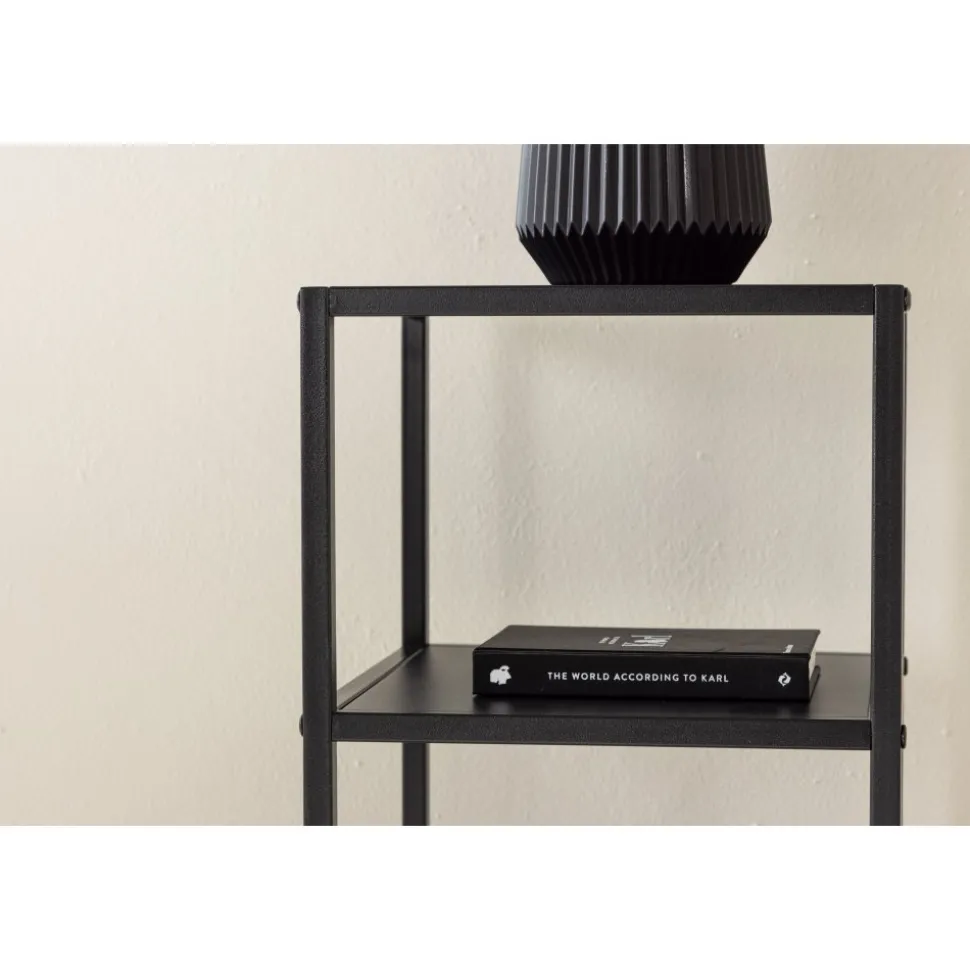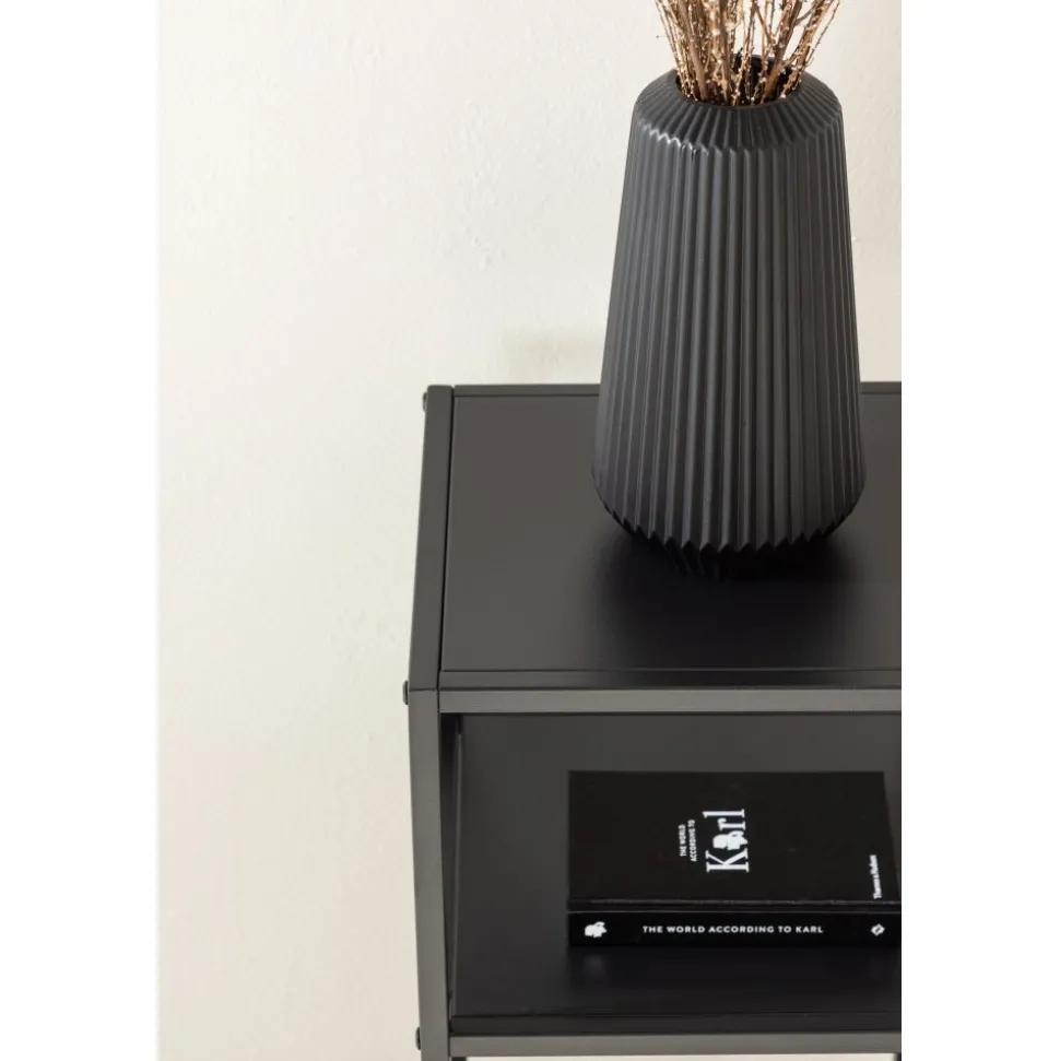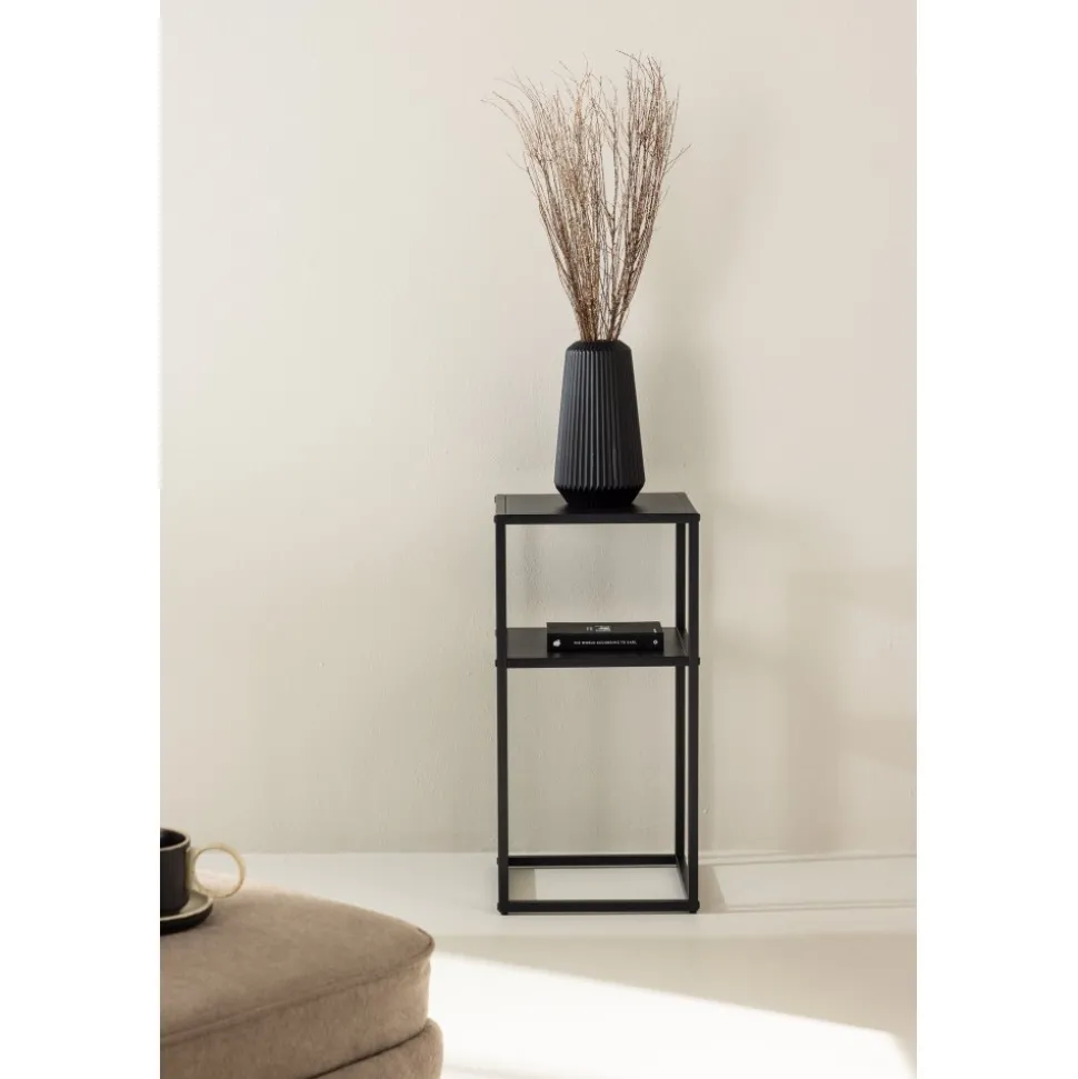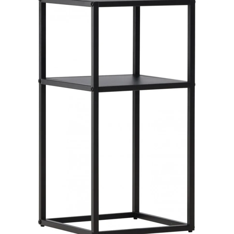 Låt oss introducera dig till det svarta sidobordet Punta, det perfekta sidobordet som kombinerar funktion och stil på ett perfekt sätt. Med en kvadratisk och minimalistisk design i svart stål är detta inte bara ett praktiskt tillskott till ditt hem utan också en inredningsdetalj i sig. Det höga hyllplanet erbjuder generöst med utrymme för dina favoritböcker, vackra dekorationer eller kanske din växande växtsamling. Här får du ordning och reda på dina saker du önskar ha nära till hands. Oavsett om det placeras som ett sängbord i ditt sovrum, smakfullt sidobord i ditt vardagsrum eller som piedestal i badrummet så kommer Punta höja stilnivån med sin klassiska och skandinaviska design. Här får du ett tillskott till hemmet som kommer göra succé på nolltid! Levereras omonterad.