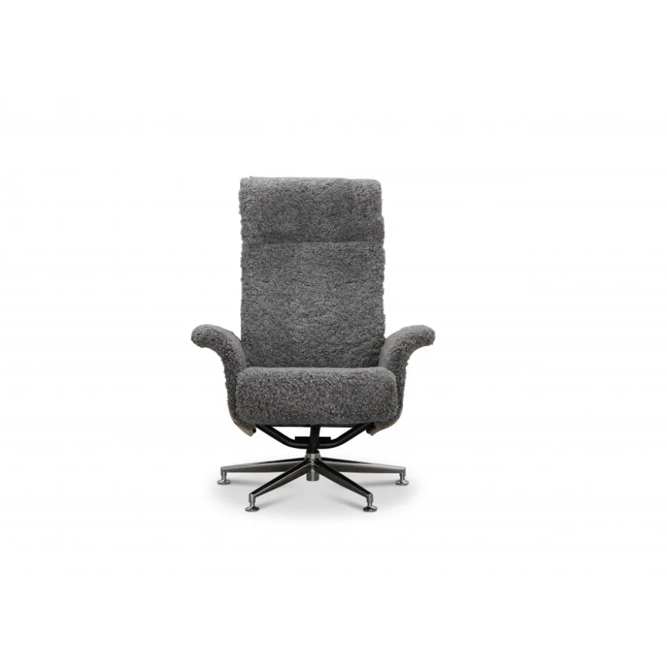 - Reclinerfåtölj med fotpall i äkta fårskinn ek/grafitgrå – Ulla