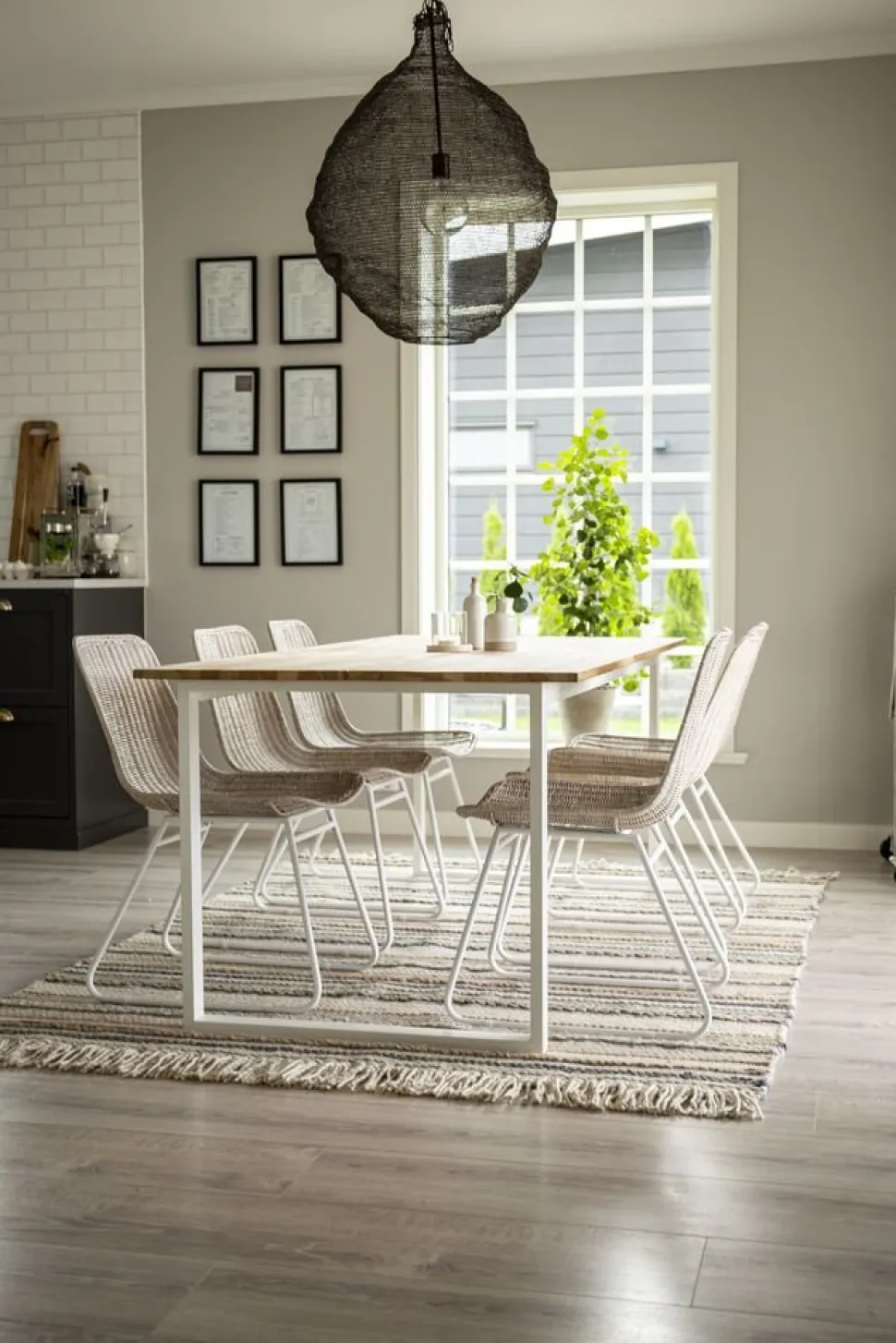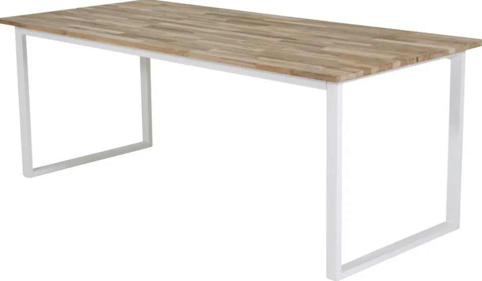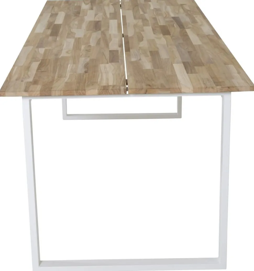 Matbord med en vintage-look, bordsskiva i teak och underrede i vit metall.