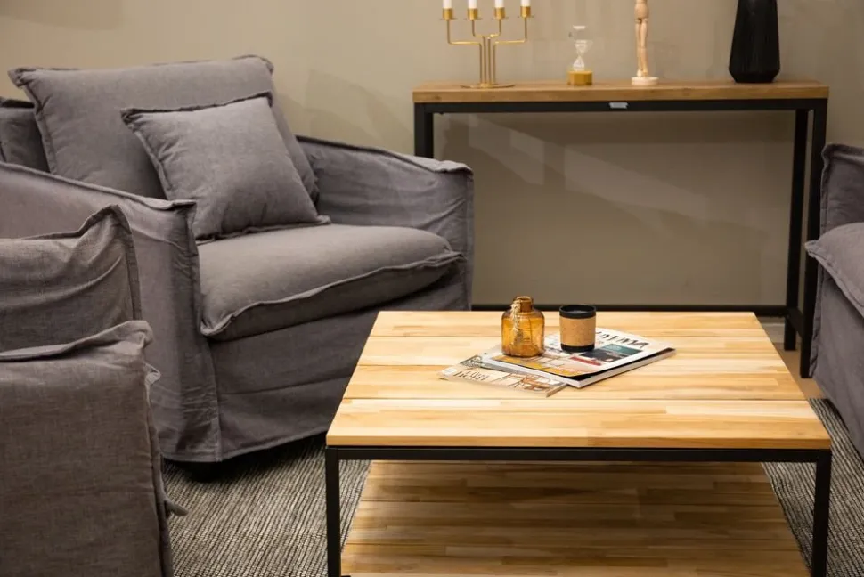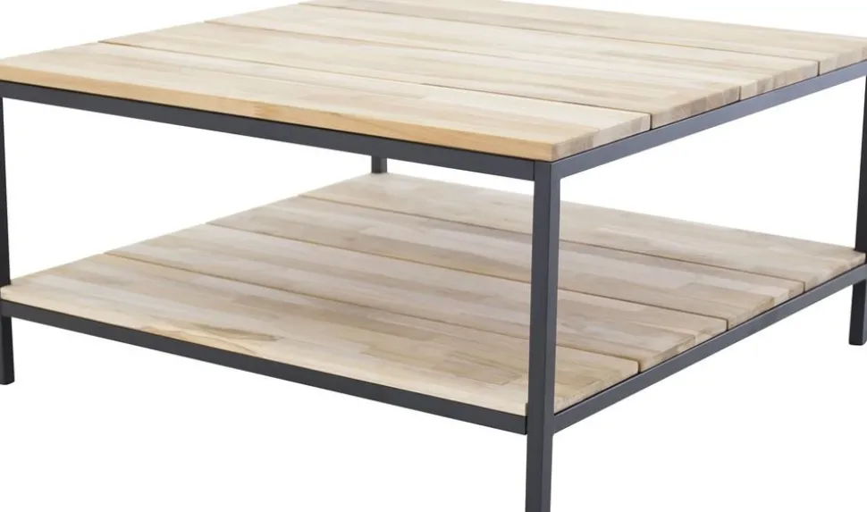 Soffbord i teak, vintage brun i färg. Stomme av svart metall.