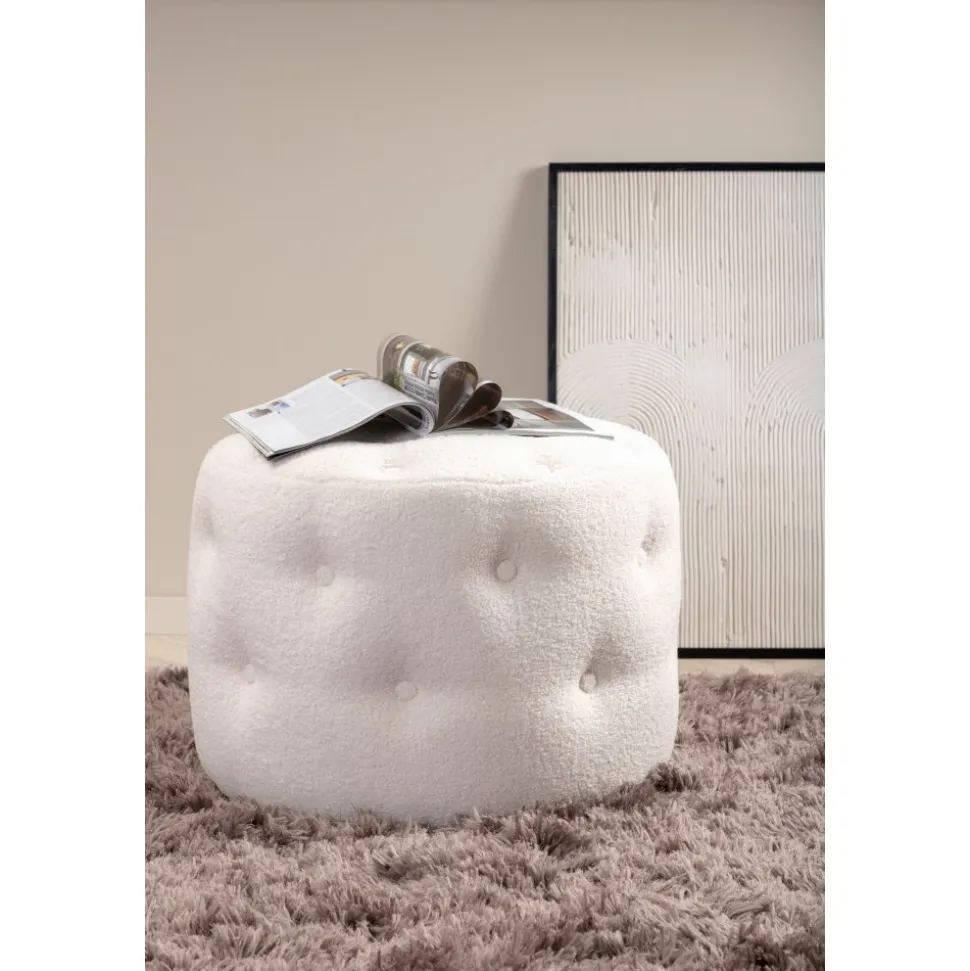 Sittpuff av trä, klädd med polyestertyg.