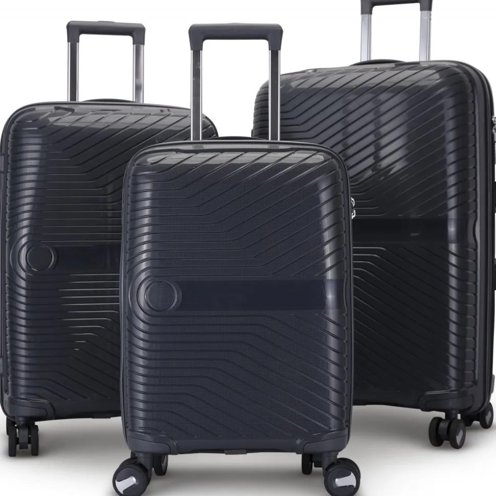 Oslo resväskor 3 st, perfekt för alla typer av resor. Varje väska är tillverkad av hållbar hårdplast och erbjuder ett elegant utseende tillsammans med praktiska funktioner, inklusive inbyggda 3-siffriga kodlås för extra säkerhet. Väskorna är tillverkade av polypropylen, som är känt för sin hållbarhet och lätta vikt, samt aluminium och plastdetaljer som bidrar till ett robust utförande. Väskorna är svarta för att ge en tidlös och elegant look.