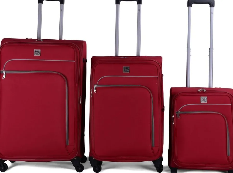 Set med i tre olika storlekar. Tillverkade av textil och polyester med hjul och handtag. Mycket rymliga med ett flertal fack på både insidan och utsidan.