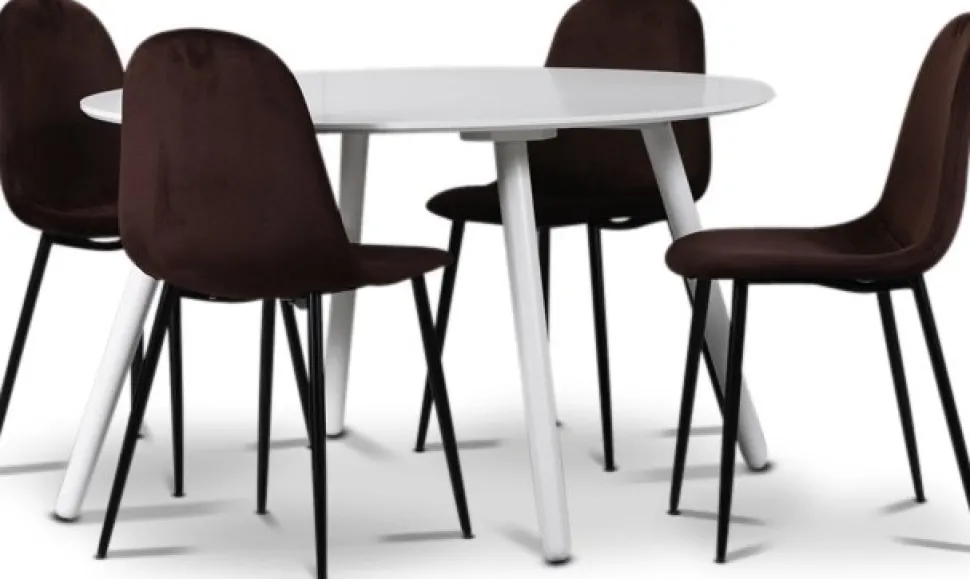 - Rosvik matgrupp, matbord med 4 st Carisma sammetsstolar – Vit/Bordeaux