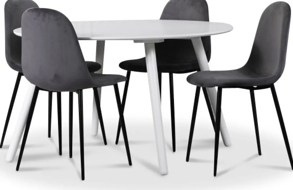 - Rosvik matgrupp, matbord med 4 st Carisma sammetsstolar – Vit/Grå