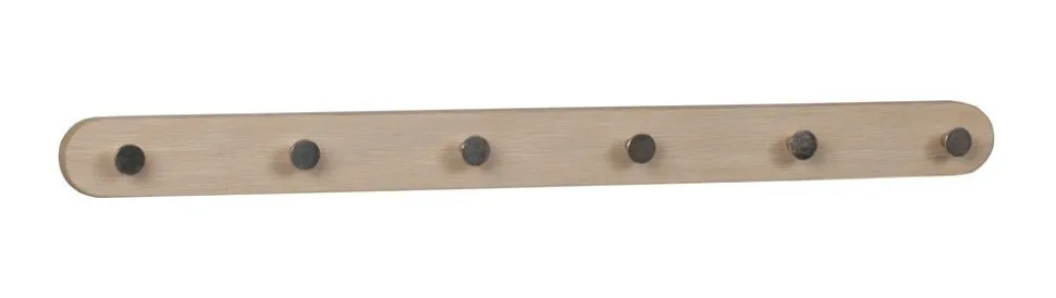 Tidlös och praktisk kroklist i massiv och fanerad lackad ek som vitpigmentarats. Sex krokar i metall. Kroklisten ingår i serien Metro från Rowico.