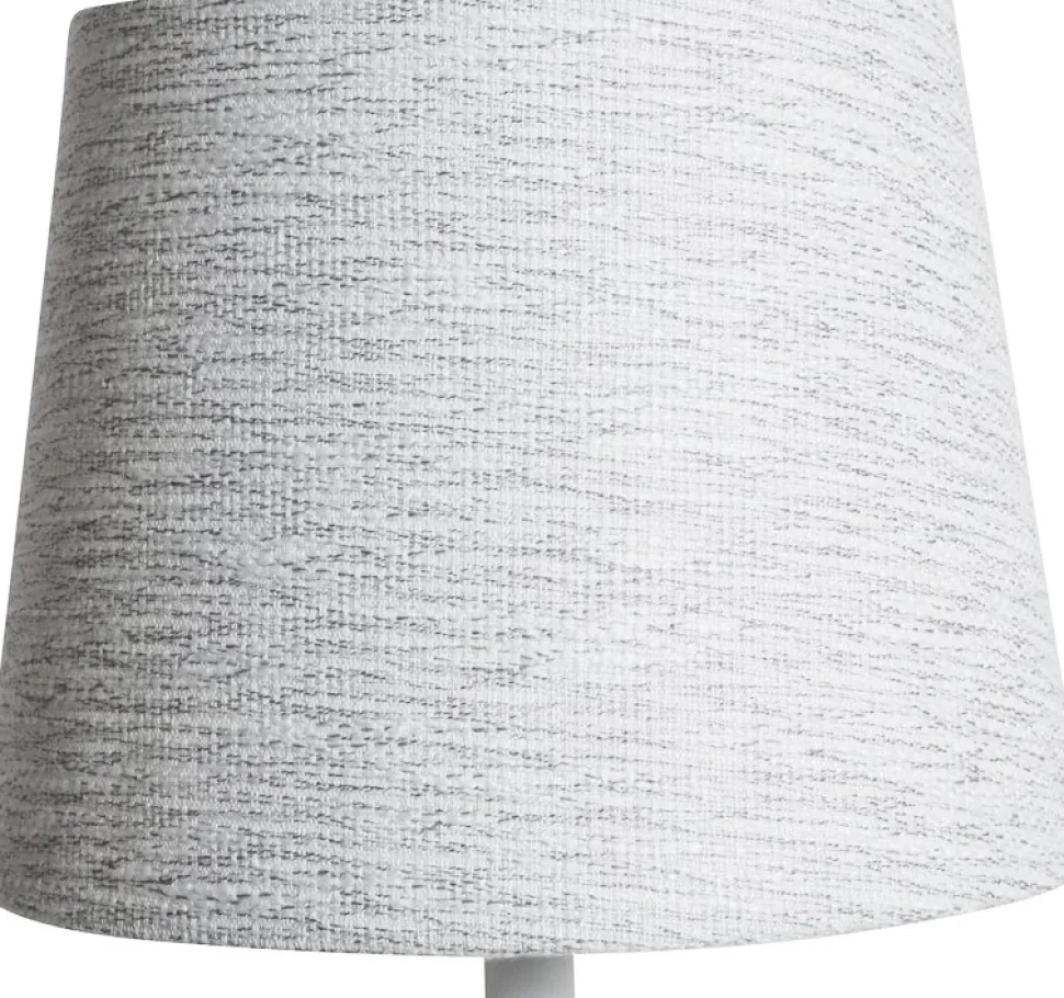 Rund i ljust grovt linnetyg. Passar både E14 och E27 fattning.