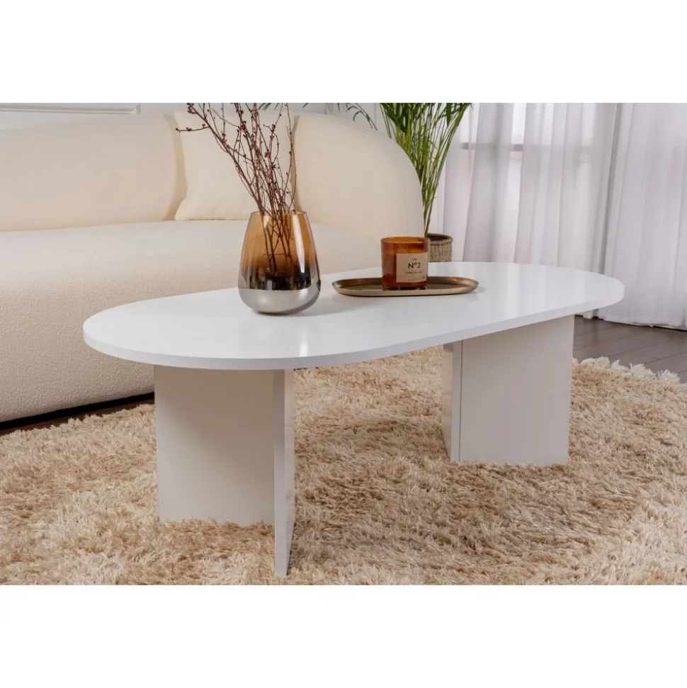 Soffbord av melaminbelagd spånskiva.