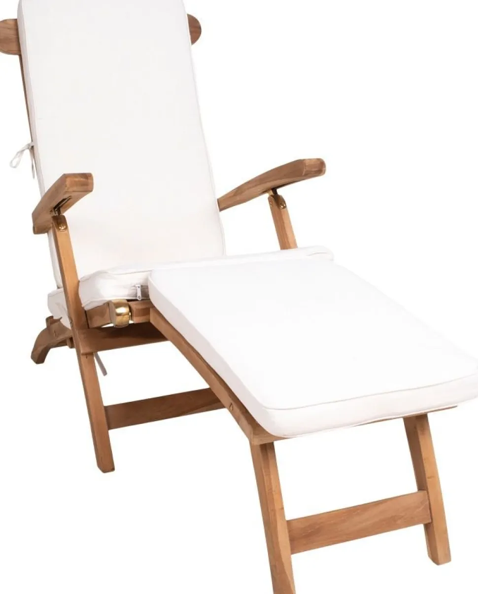 Saltö loungedyna i vitt bomullstyg som passar perfekt till våra Saltö däckstol i teak.