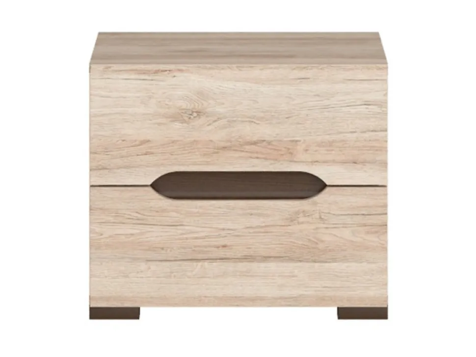 Ett fint med rundade kanter. Sängbordet har två funktionella lådor med integrerade handtag som även blir en snygg detalj på sängbordet.