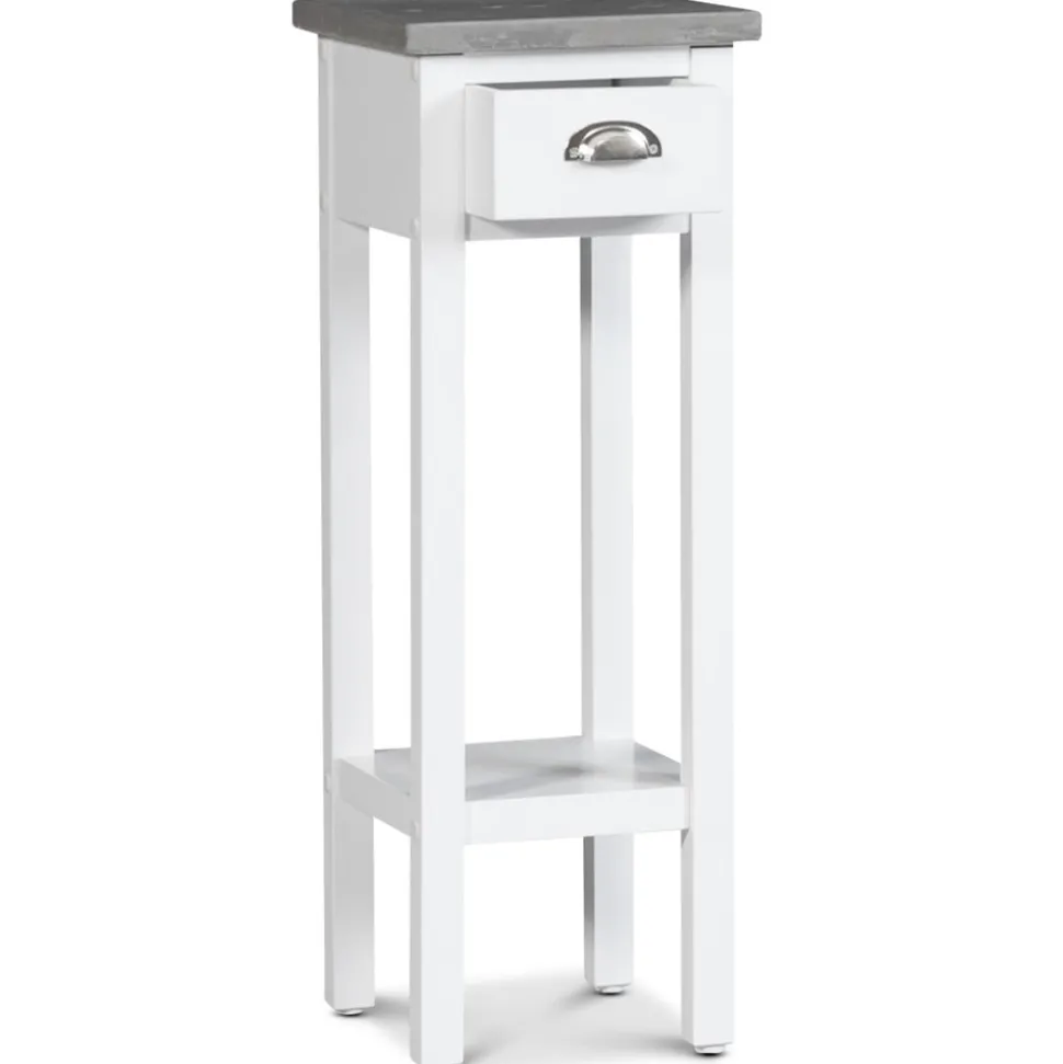 Sängbord i vitlackat trä med 1 st låda, toppskiva i cement.